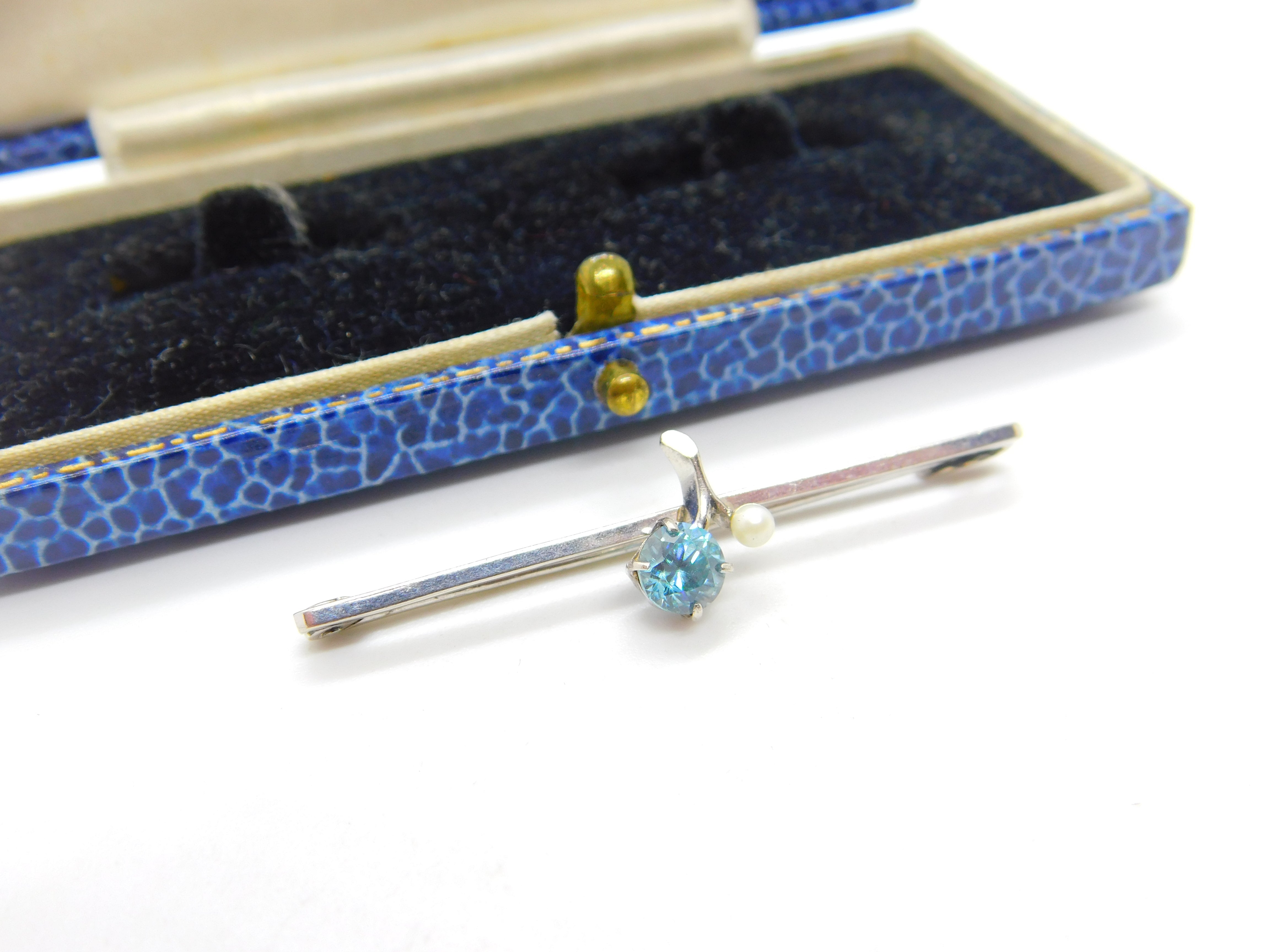 9ct White Gold, Topaz & Seed Pearl Floral Sweetheart Brooch Antique c1930 Deco