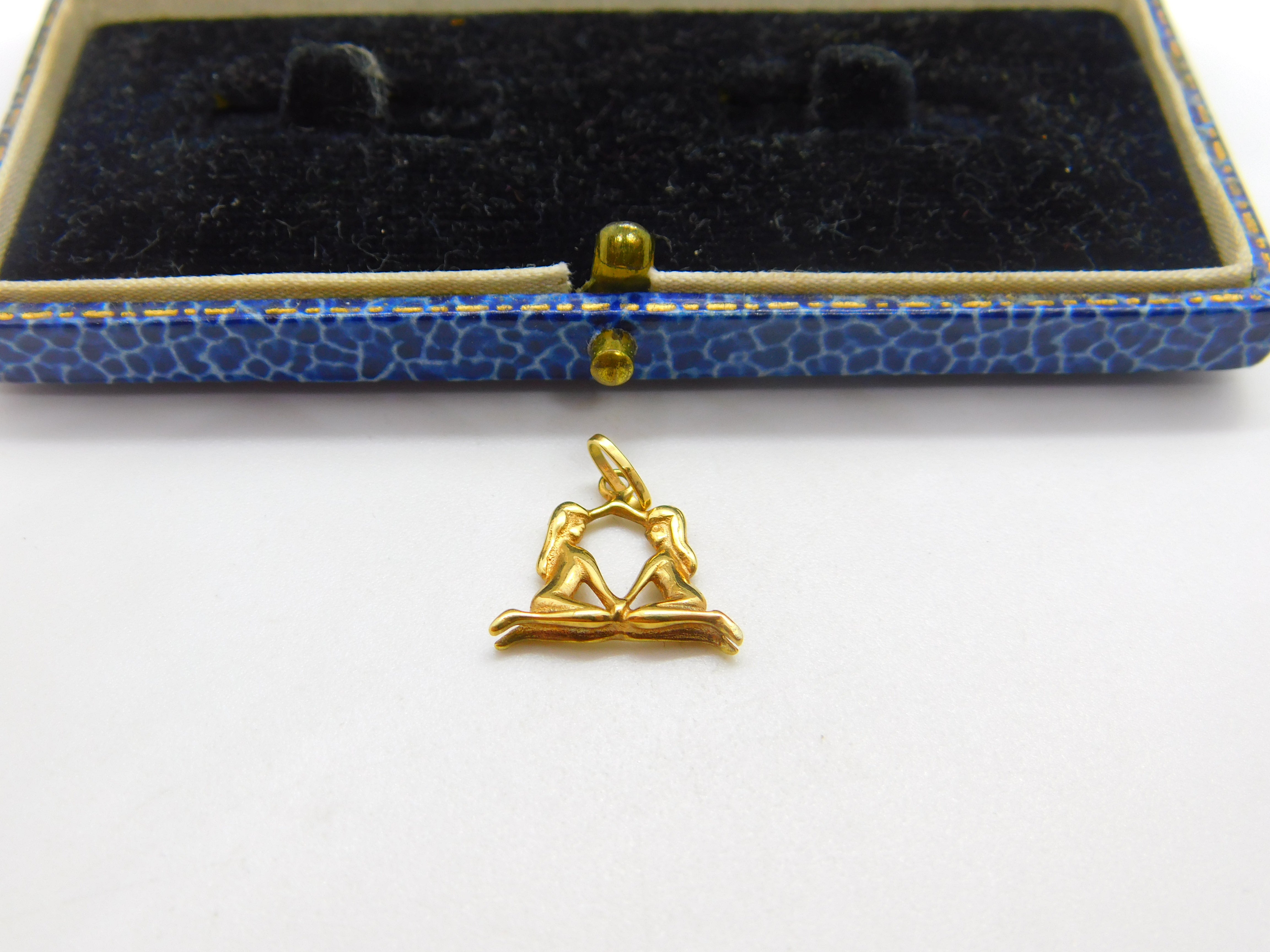 9ct Yellow Gold Twins of Gemini Zodiac Charm Pendant Vintage c1970