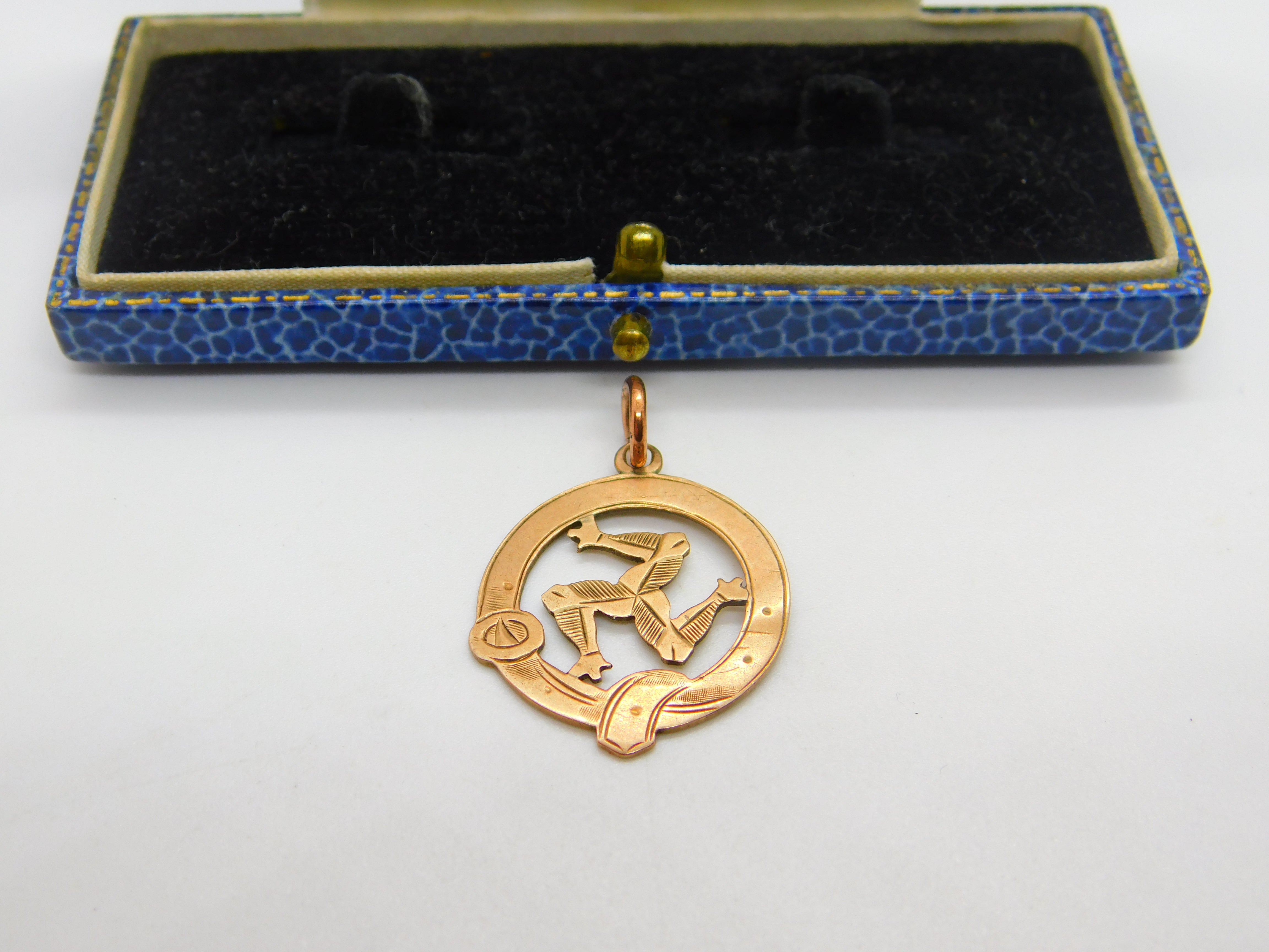 Edwardian 9ct Rose Gold 'Three Legs of Mann' Isle of Man Pendant Antique 1903 Chester