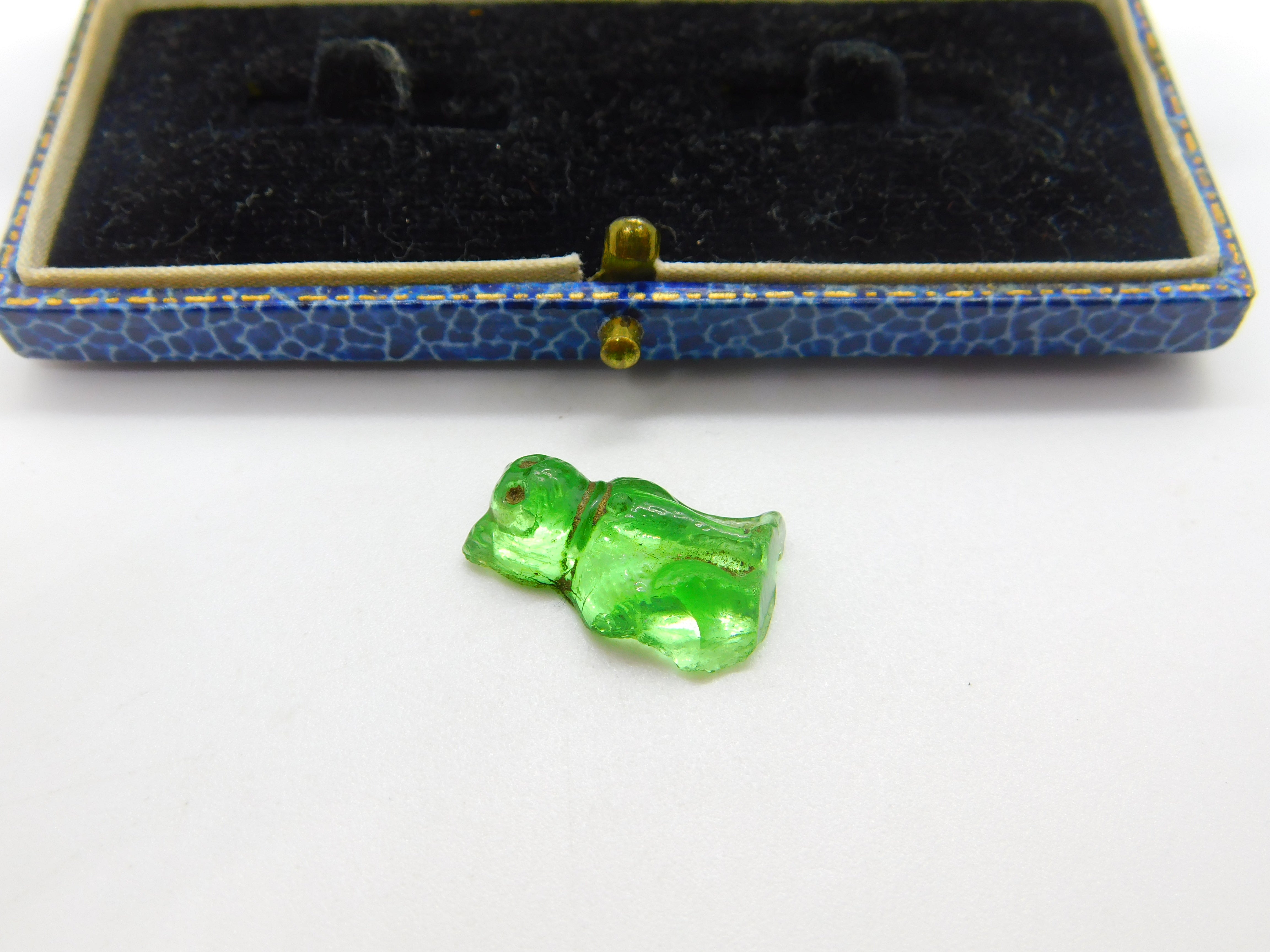 Czech Light Green Glass Cat Cracker Charm or Keepsake Antique c1920