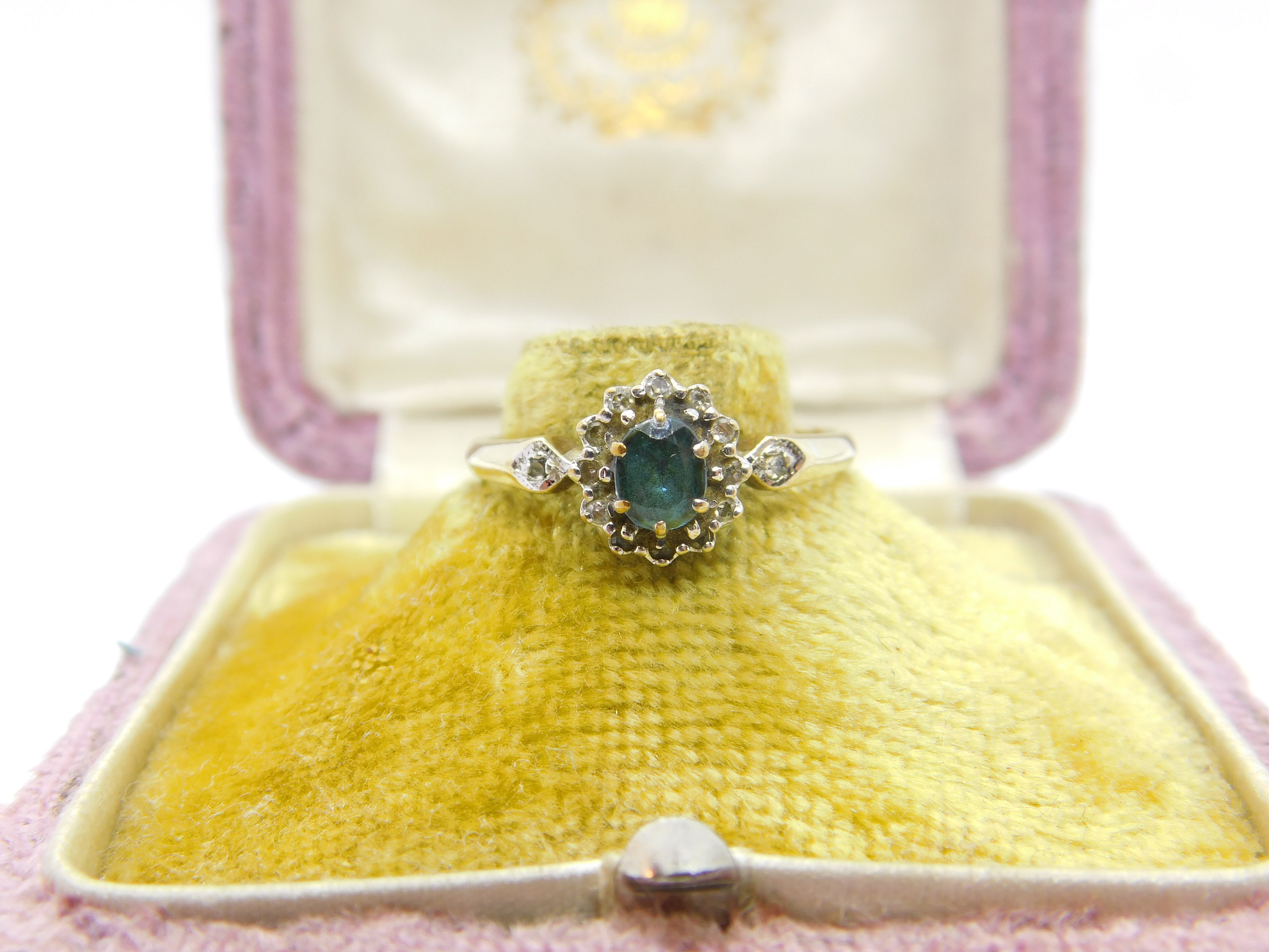 9ct Gold, Topaz & Diamond Floral Cluster Ring Vintage 1990 London Size P UK