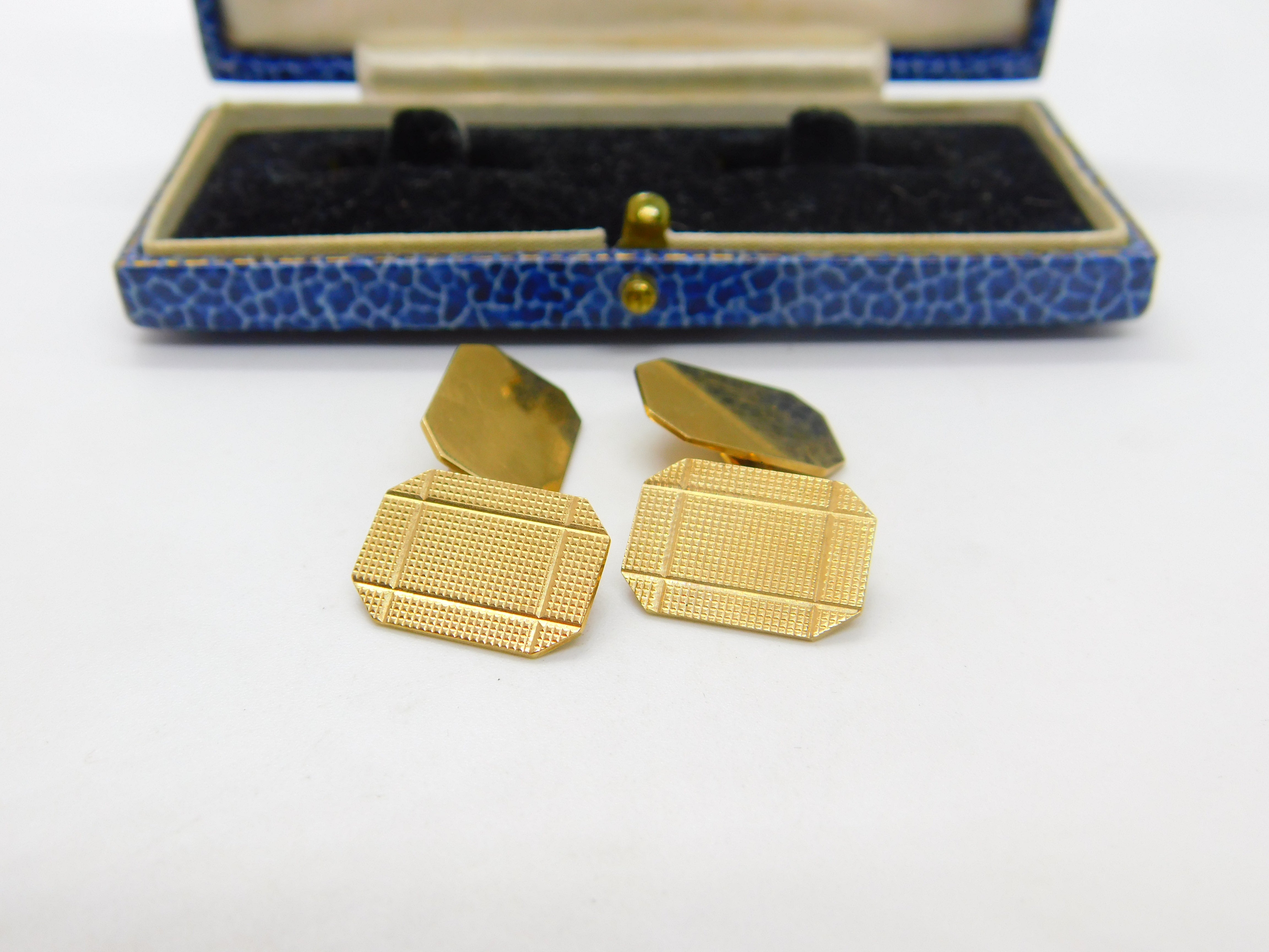9ct Yellow Gold Gents Engine Turned Cufflinks Antique 1941 Birmingham Art Deco