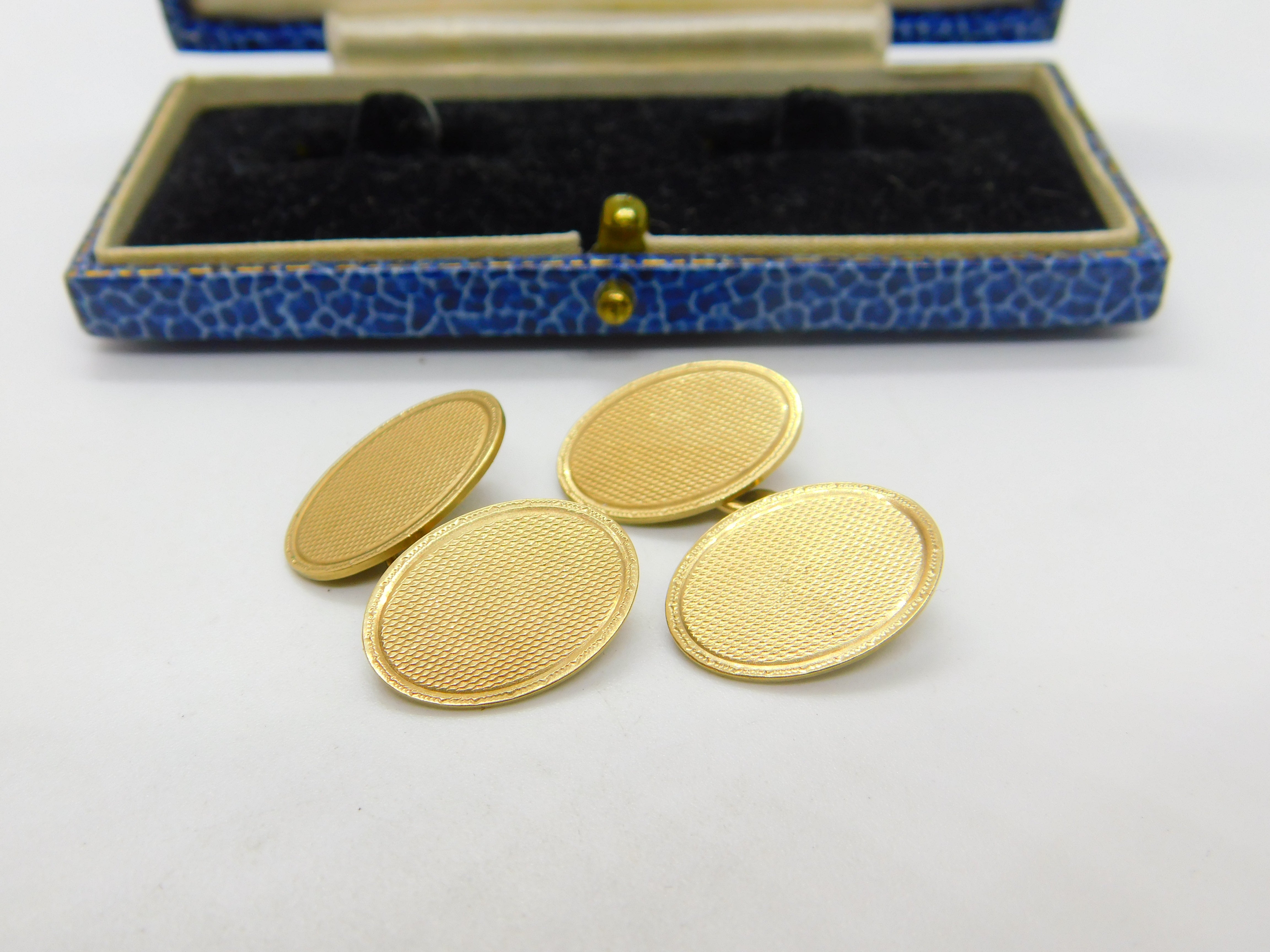 Pair of 9ct Yellow Gold Oval Form Engine Turned Cufflinks Antique 1928 Art Deco