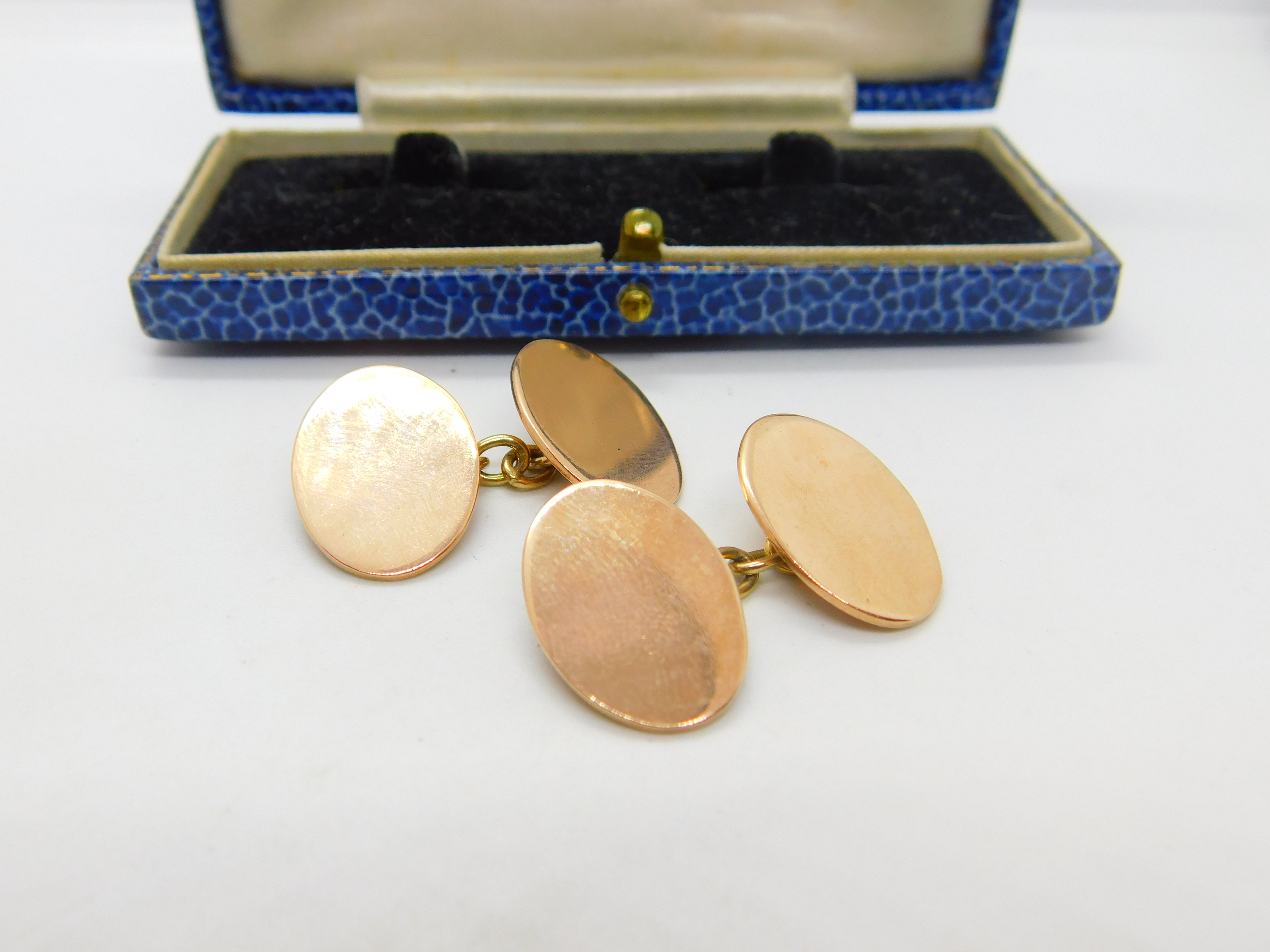 Edwardian 9ct Rose Gold Oval Form Blank Cufflinks Antique 1909 Chester