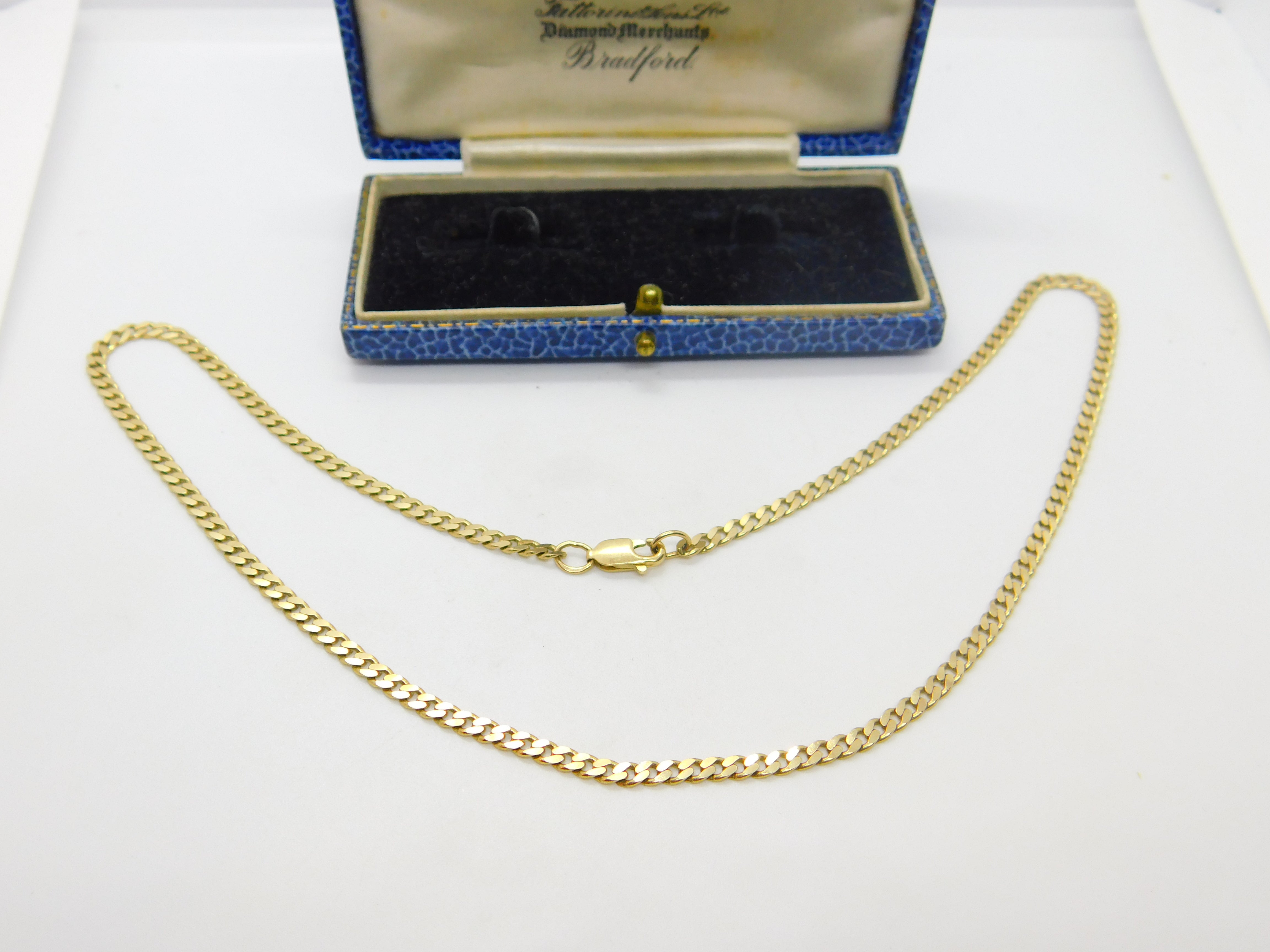 9ct Yellow Gold Essential Flat Curb Link Chain Necklace 16" Length Vintage c1970