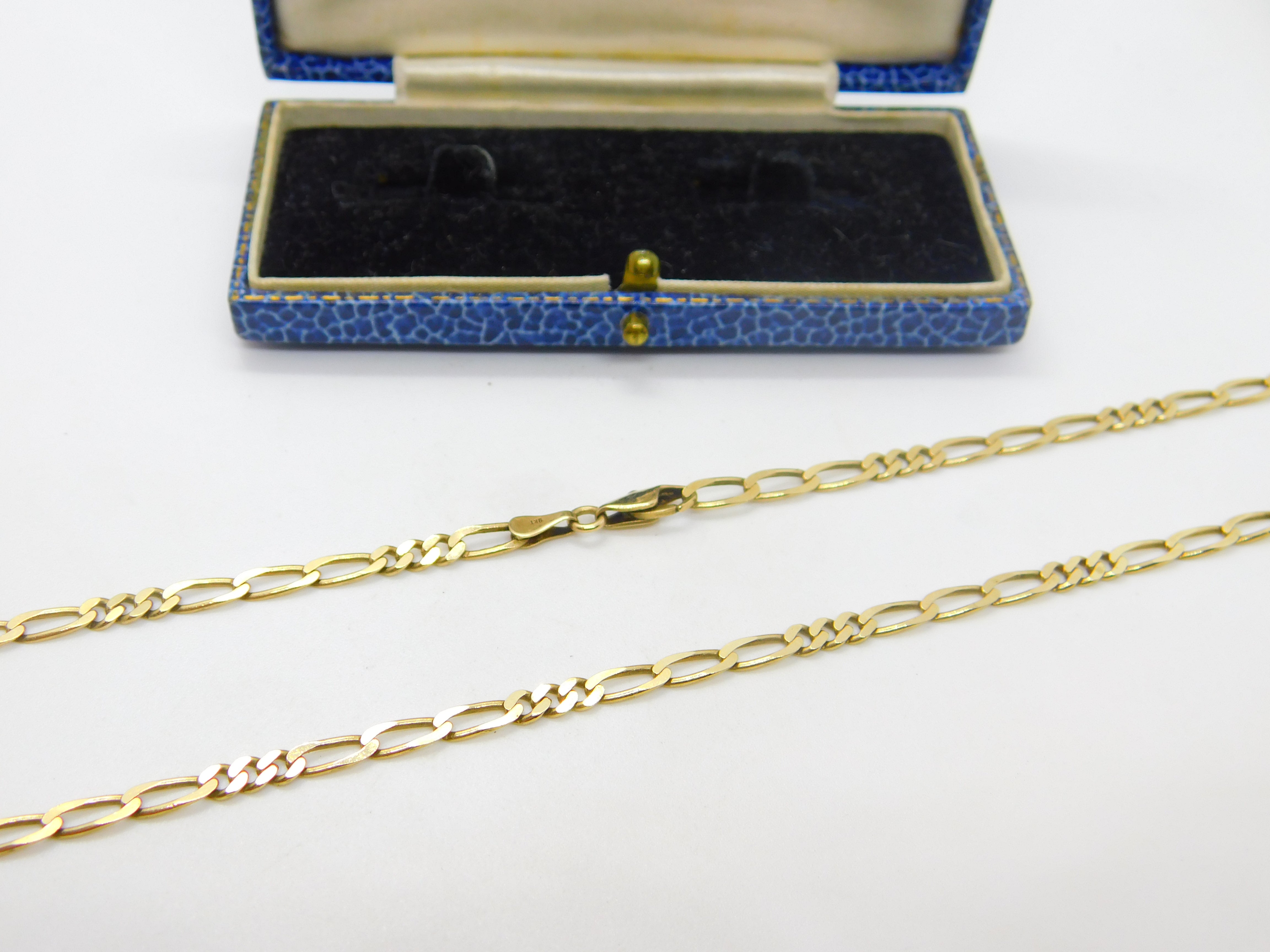 Long 9ct Yellow Gold Figaro Link Chain Necklace 30" Length Vintage c1970