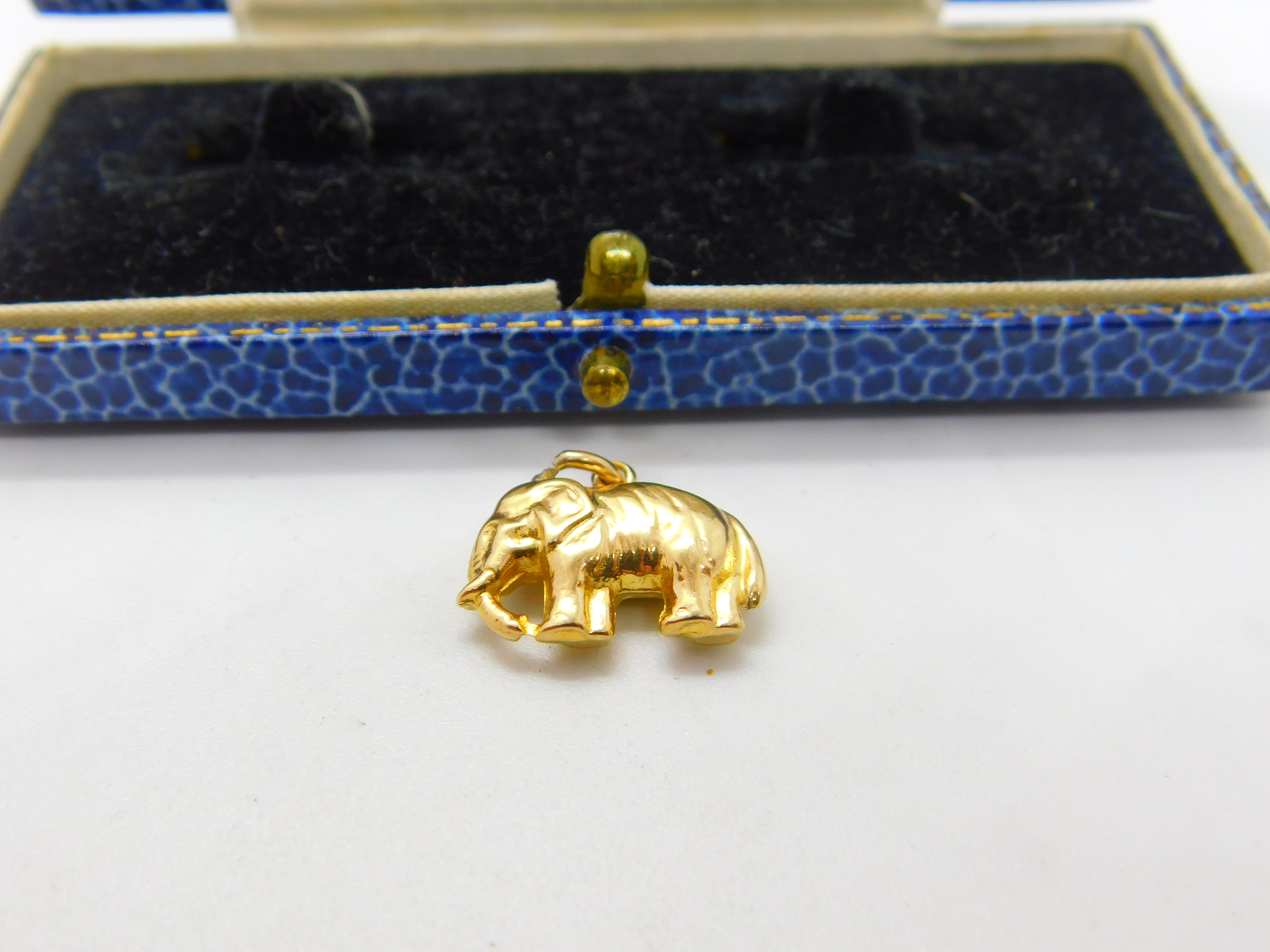 9ct Yellow Gold Walking Elephant Fun Charm or Pendant Vintage c1970