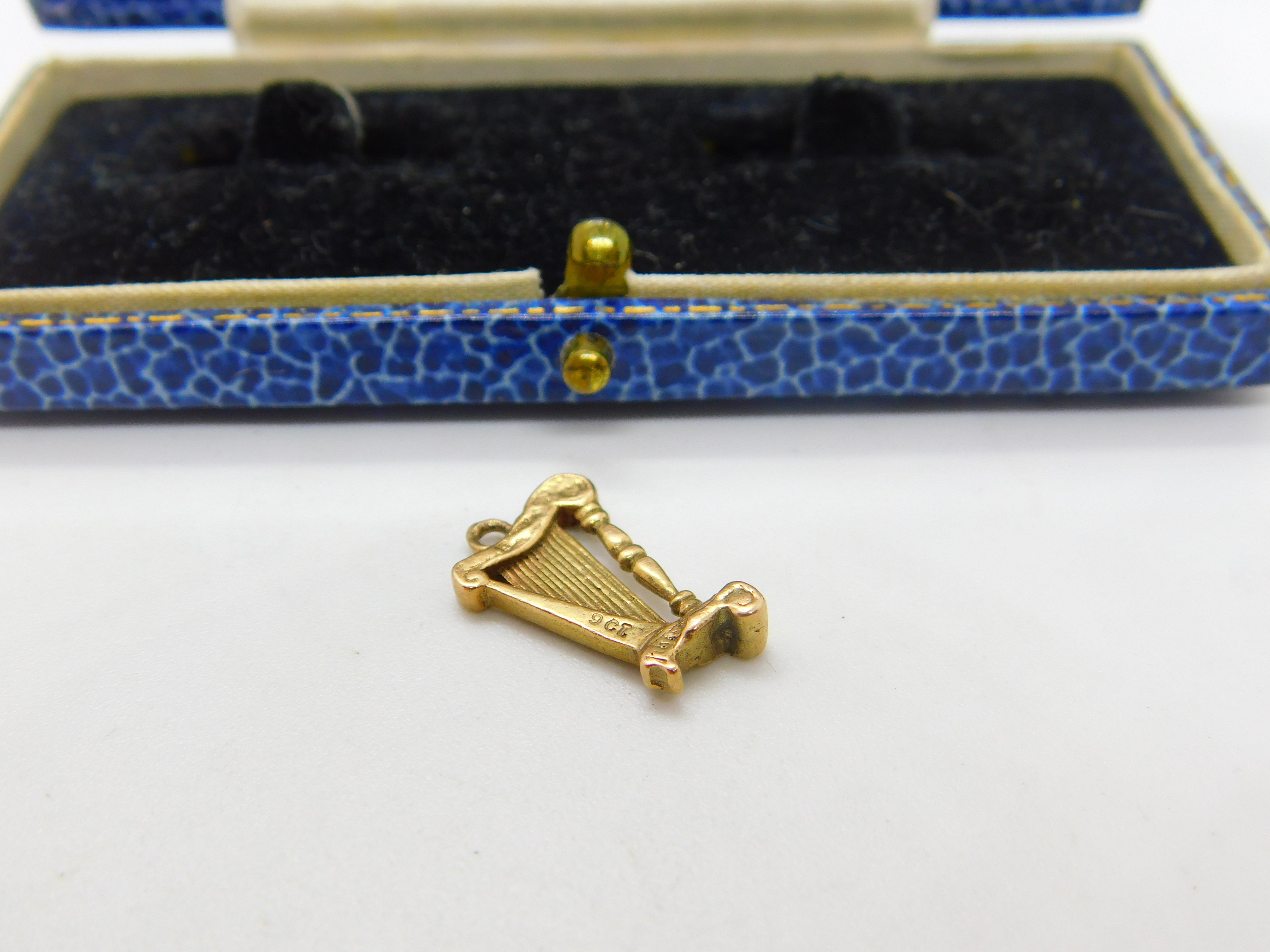 9ct Yellow Gold Irish or Concert Harp Charm Pendant Vintage c1970