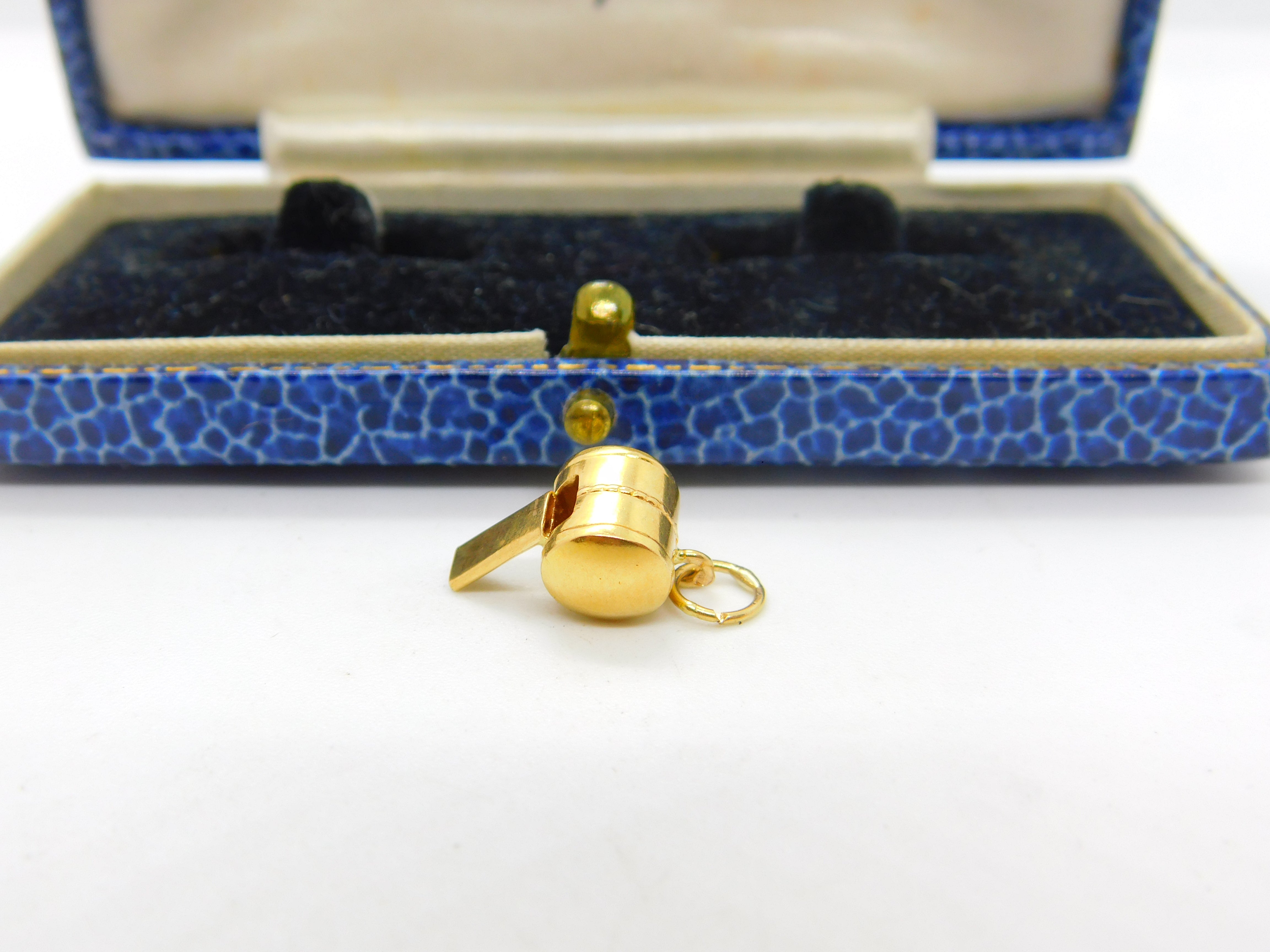 21ct Yellow Gold Working Miniature Whistle Charm or Pendant Vintage c1970