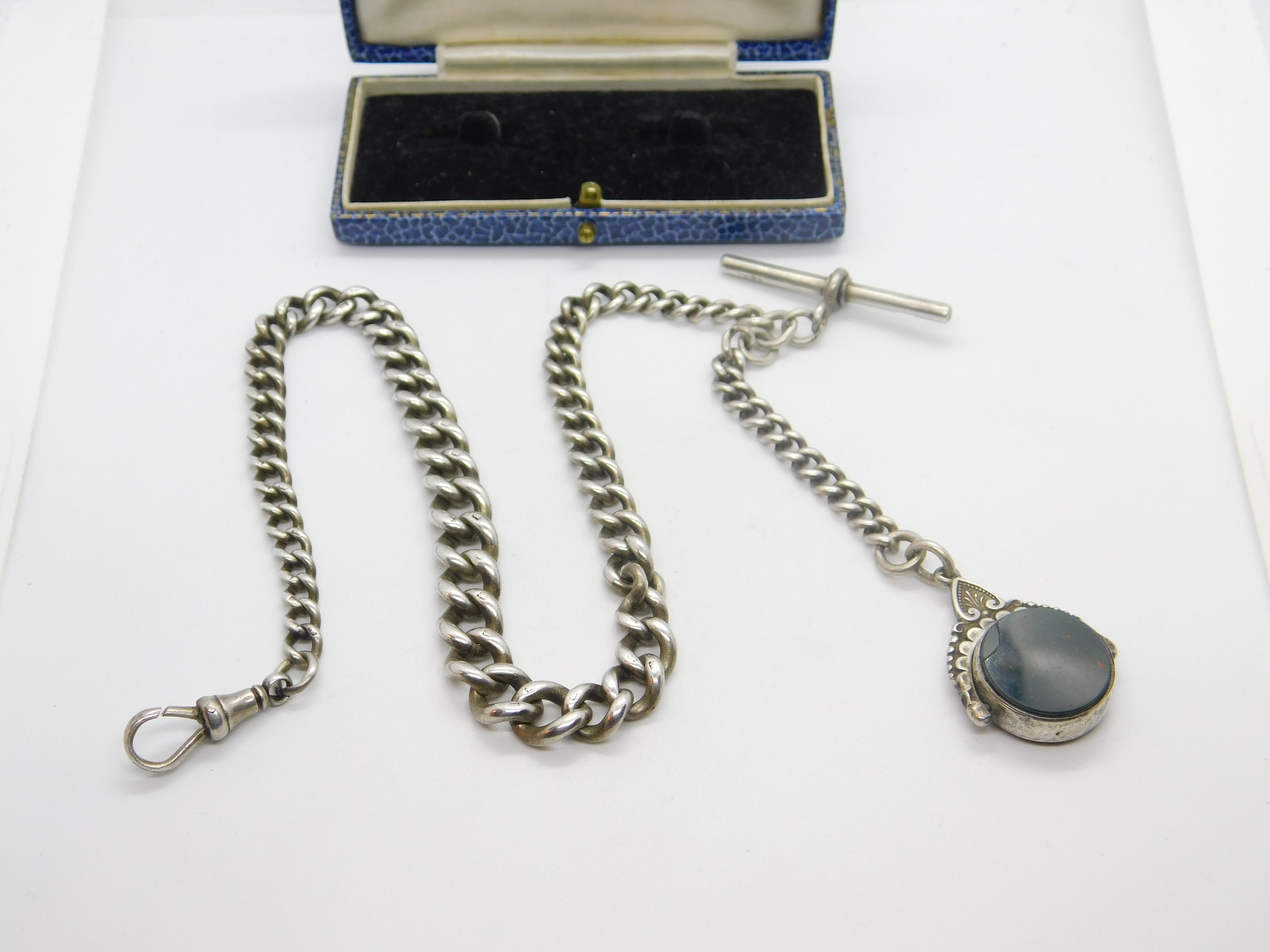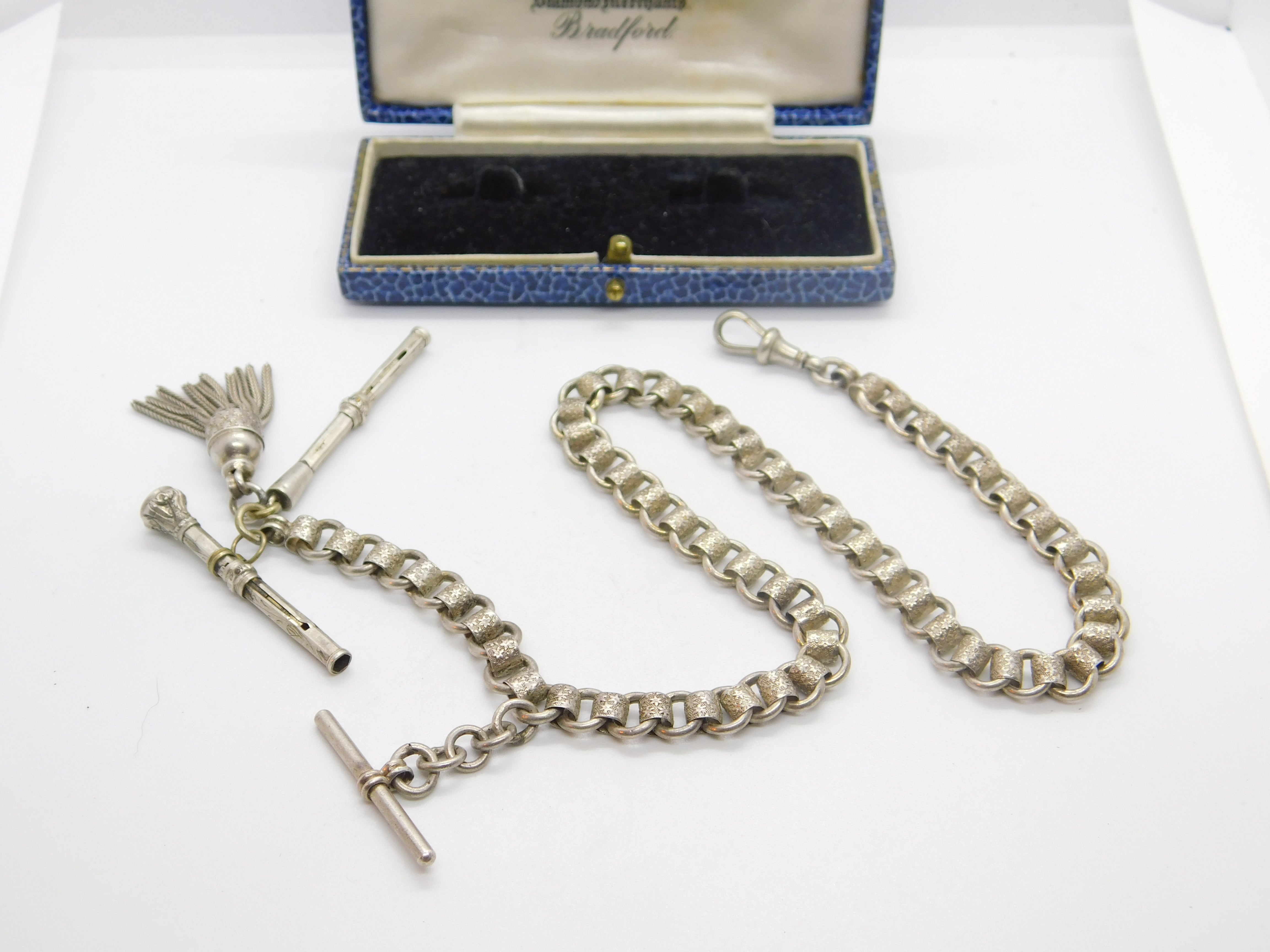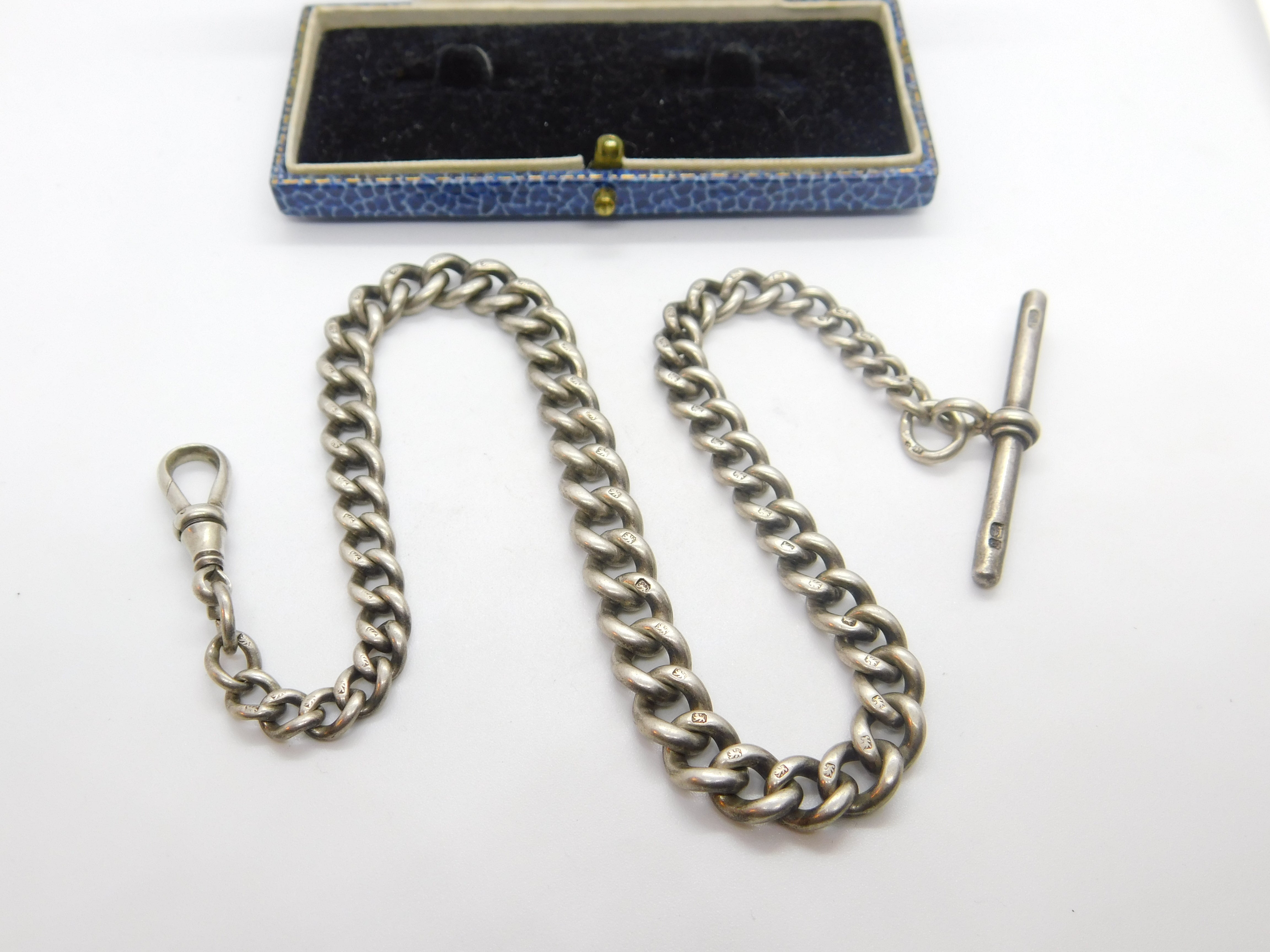 Edwardian Sterling Silver Graduating Albert Watch Chain with Spinner Fob 1909