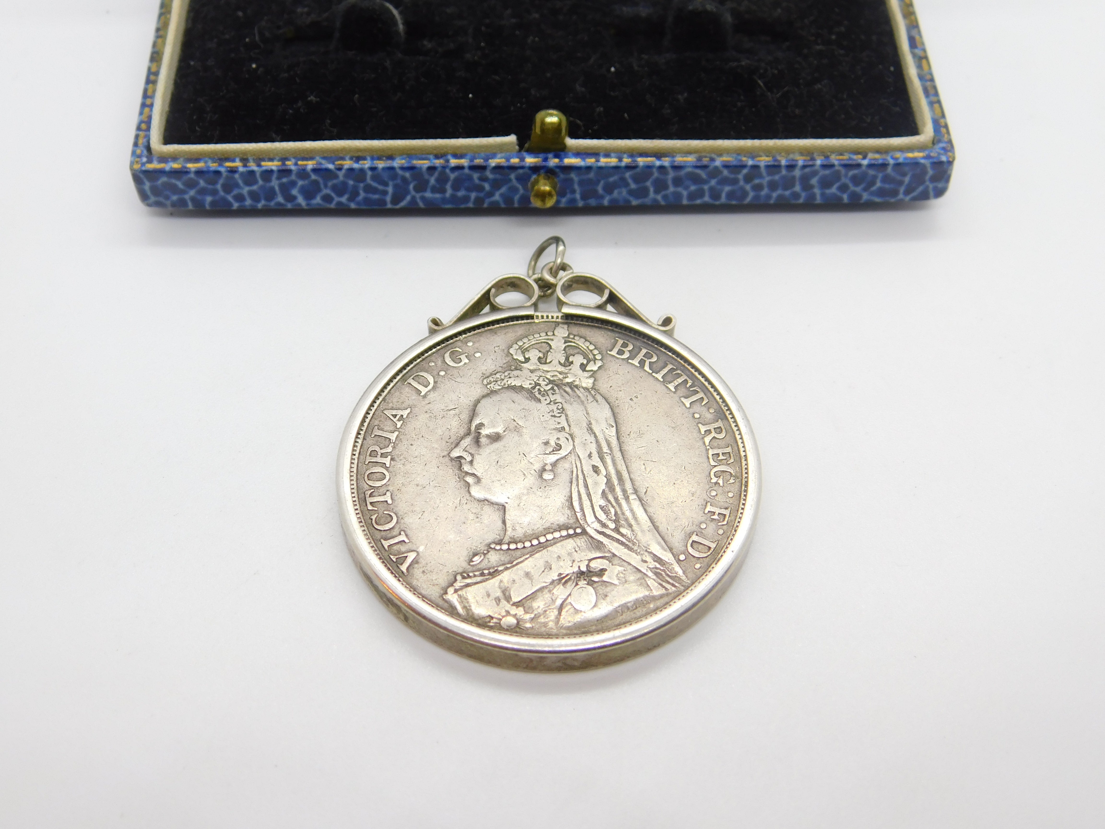 Sterling Silver Queen Victorian Mounted Crown Coin Pendant Antique 1890