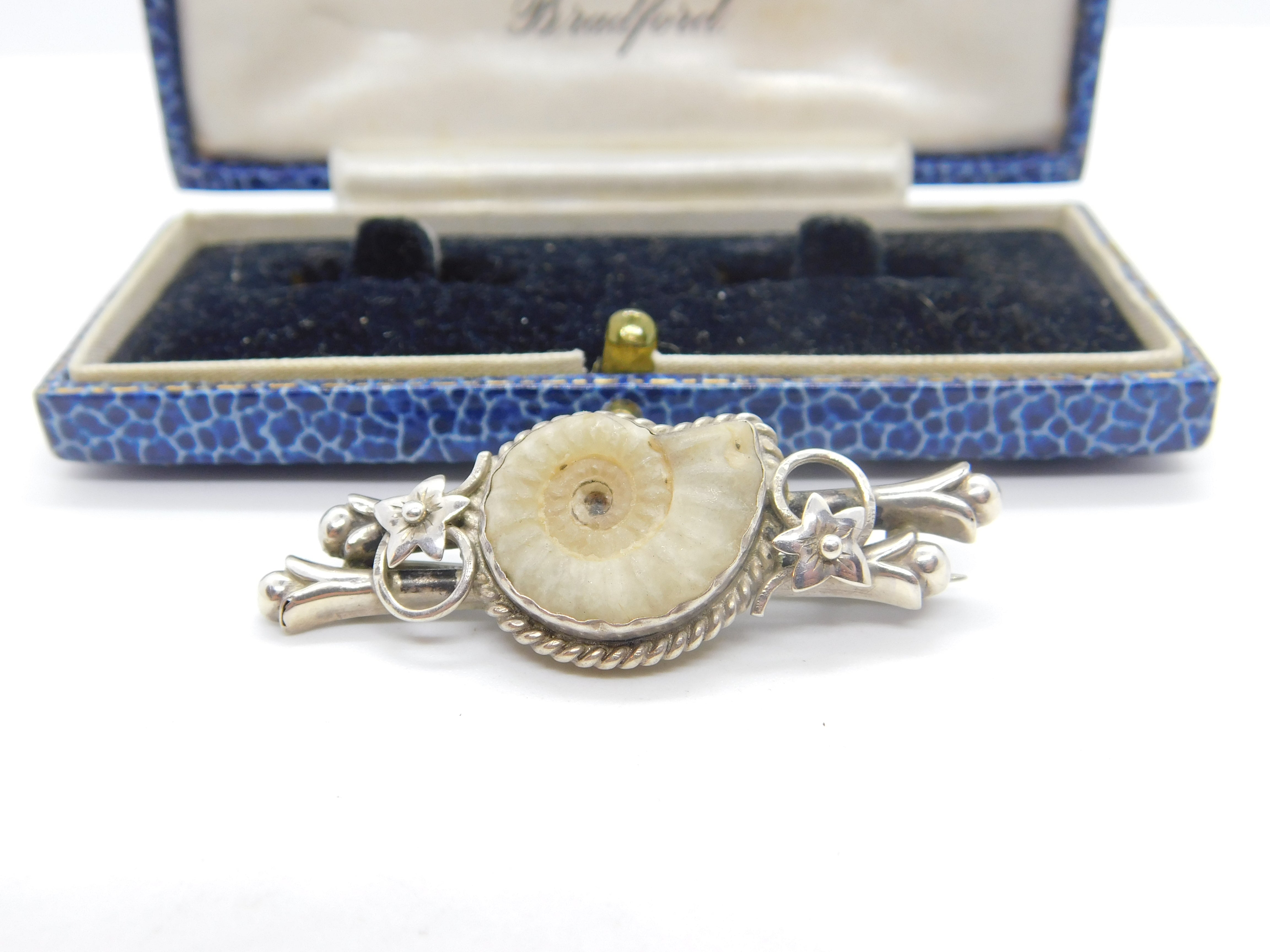 Edwardian Sterling Silver Ammonite Fossil Sweetheart Brooch Antique 1902 Chester