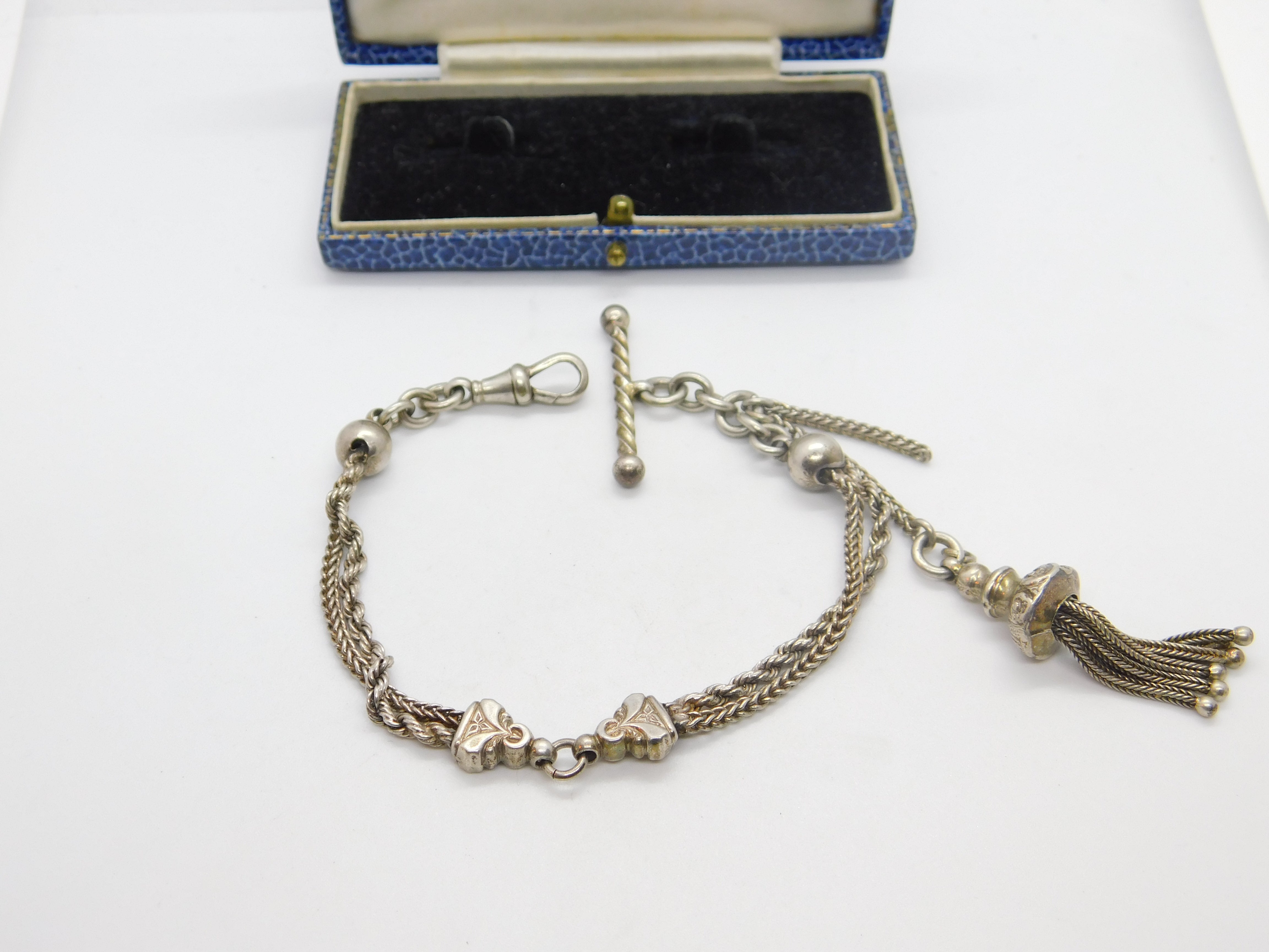 Victorian Sterling Silver Albertina Bracelet with Tassel & T-bar Antique c1880