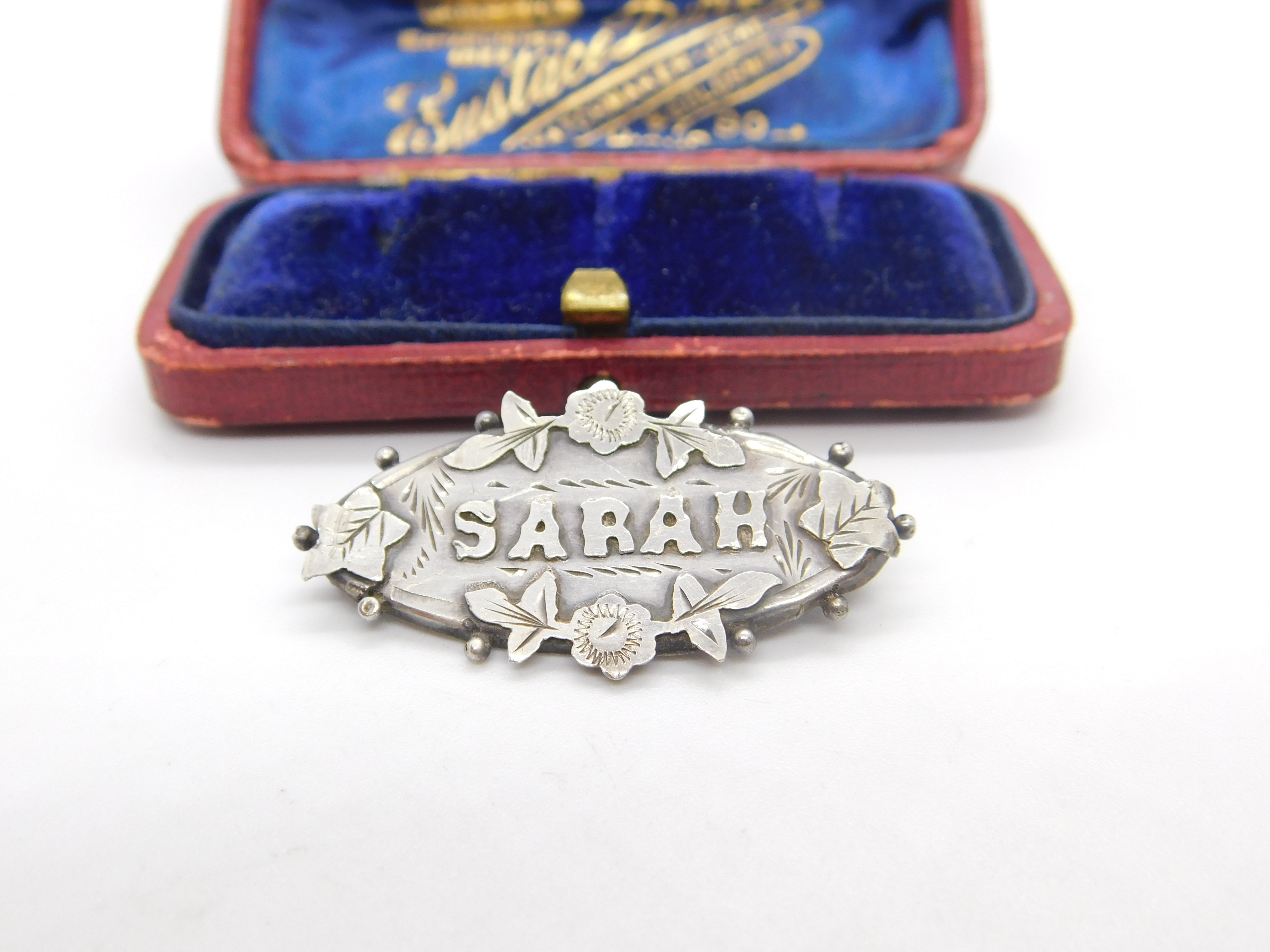 Sterling Silver Sarah Name Christening Brooch Antique 1913 Birmingham