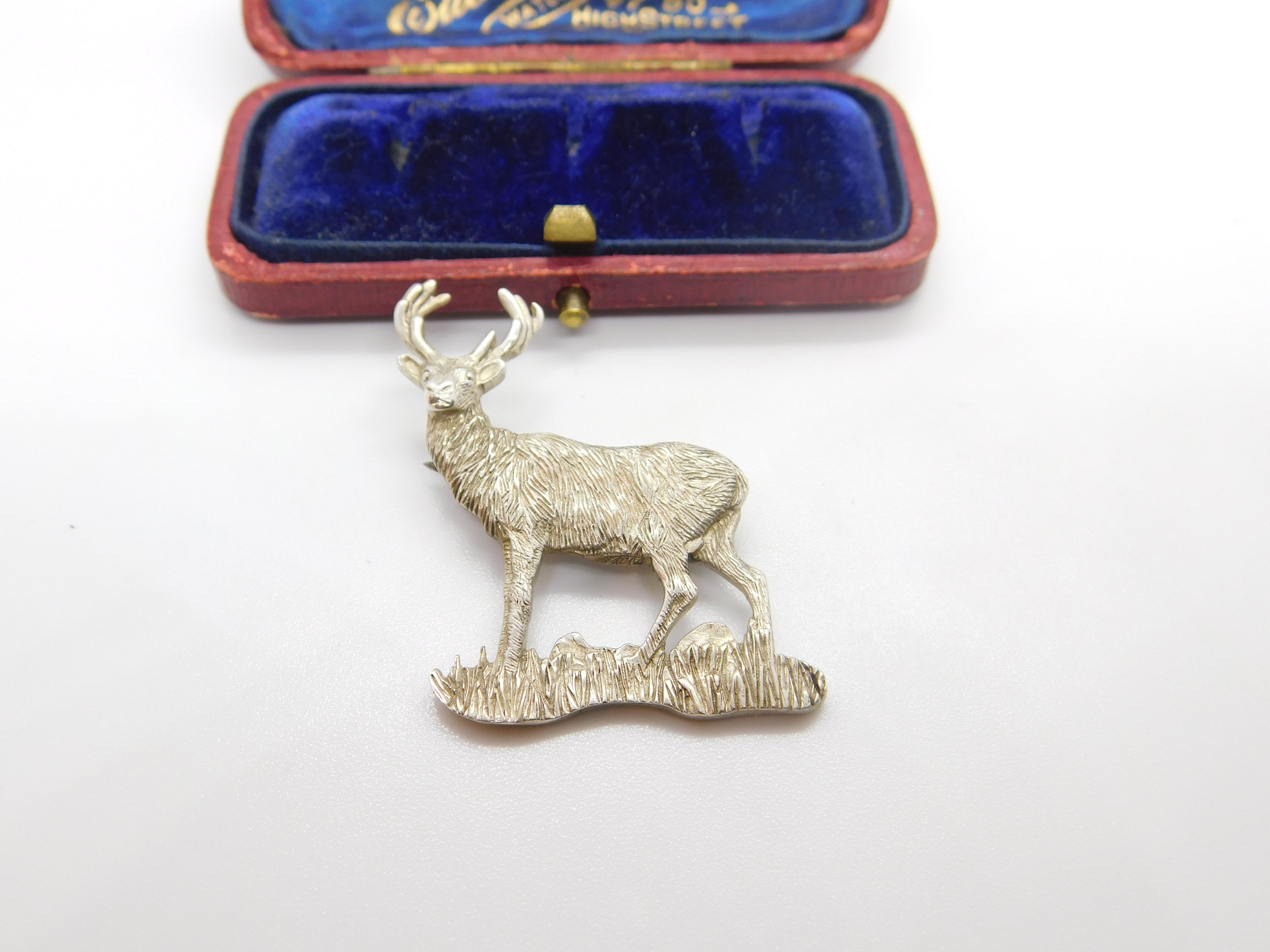 Scottish Sterling Silver Stag Deer Figurative Brooch Vintage 1990 Edinburgh