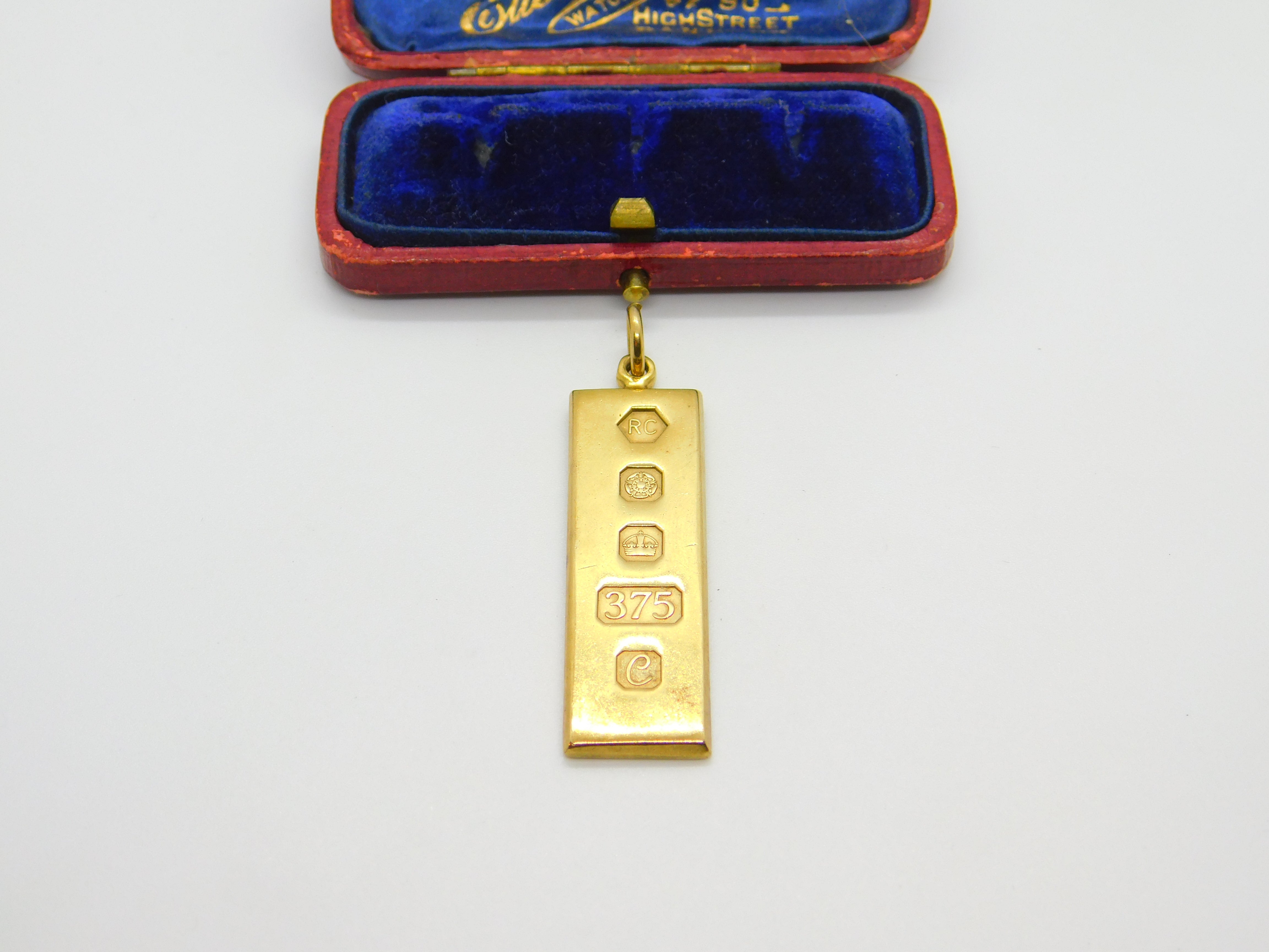 9ct Yellow Gold 1/2 ozt Bullion Bar Ingot Pendant Vintage 1977 Sheffield