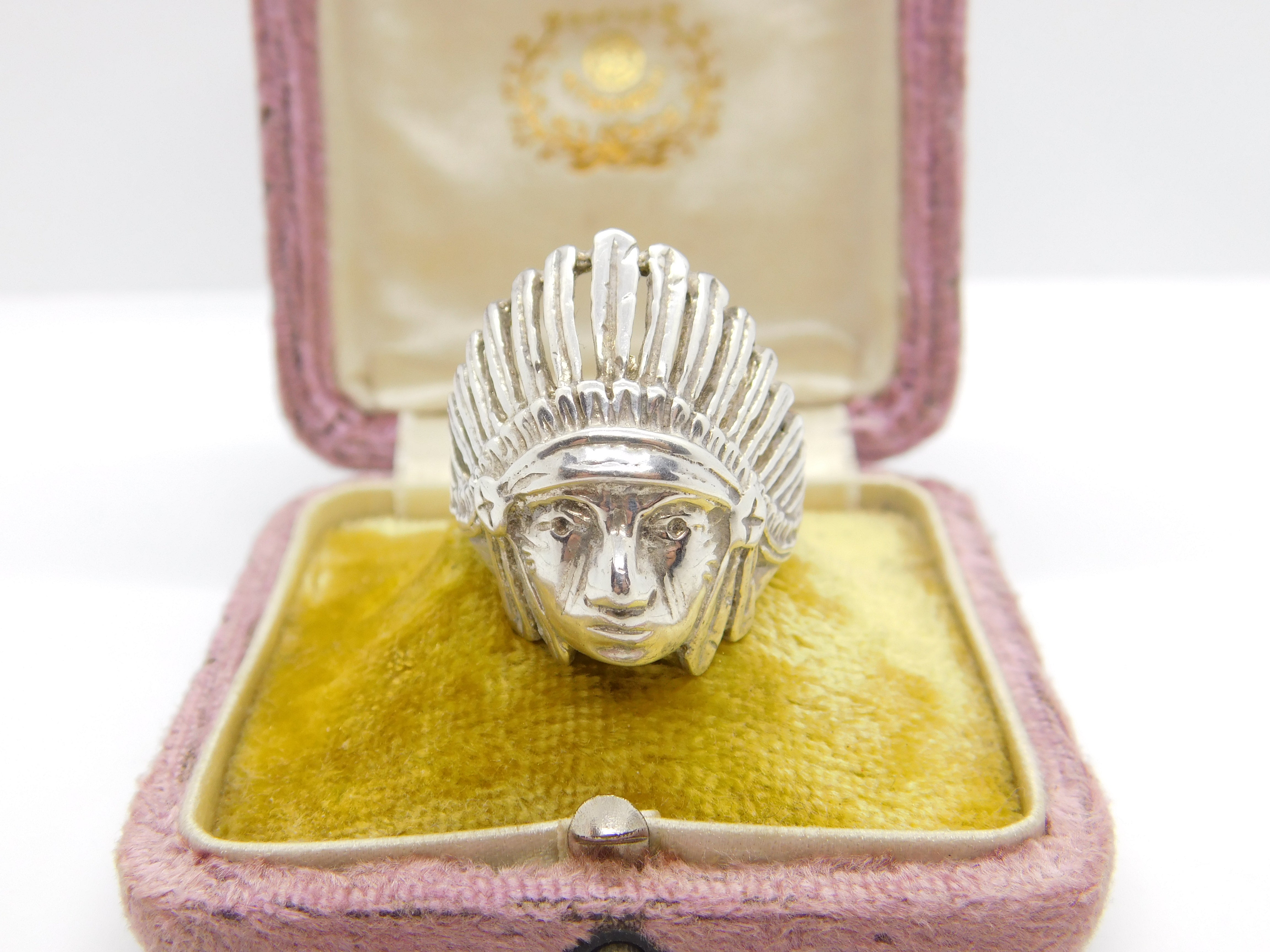 Large Sterling Silver Native American Chief Statement Ring Vintage c1970