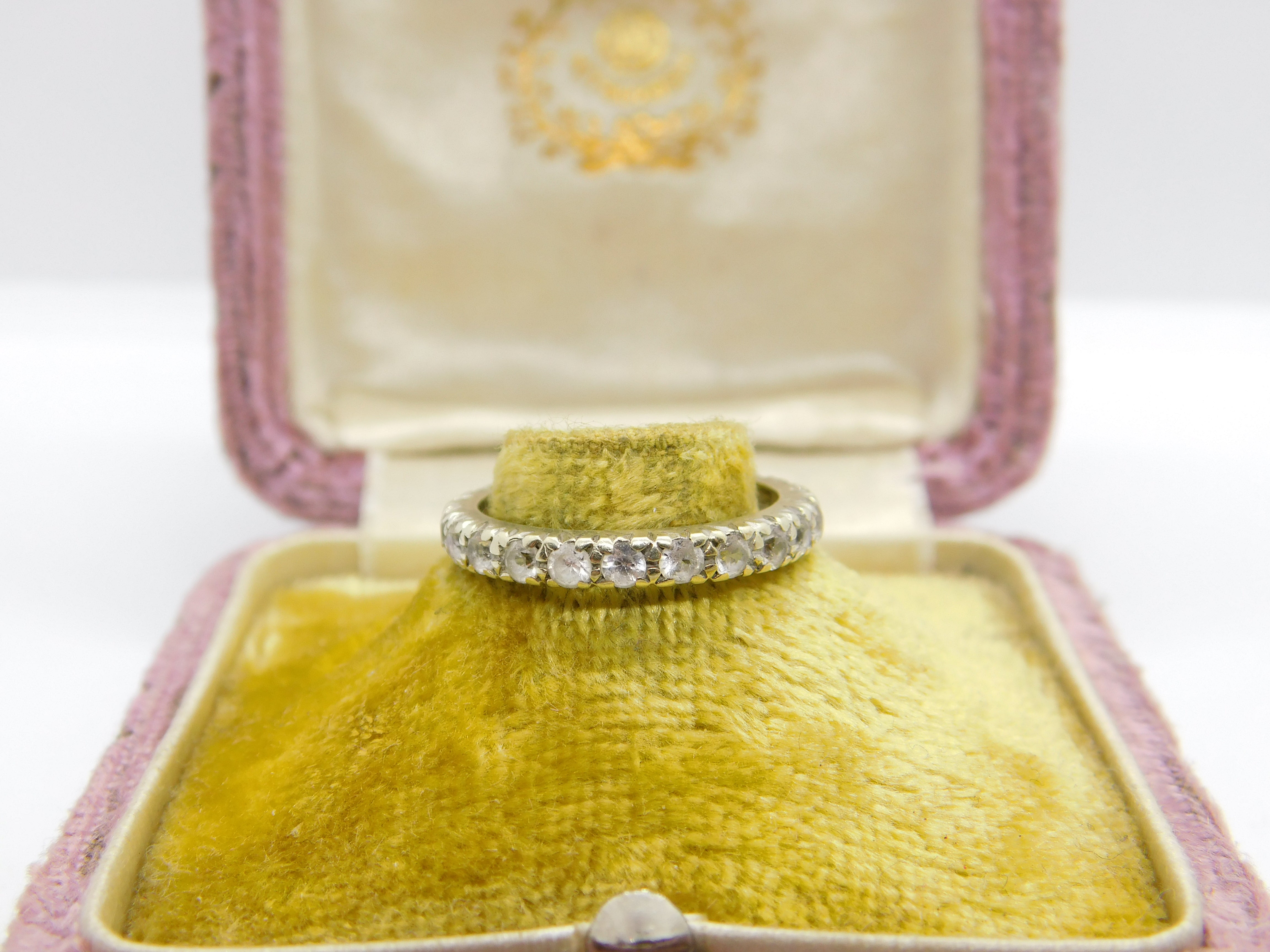 9ct White Gold & Spinel Set Full Eternity Ring Vintage c1970 Size L UK