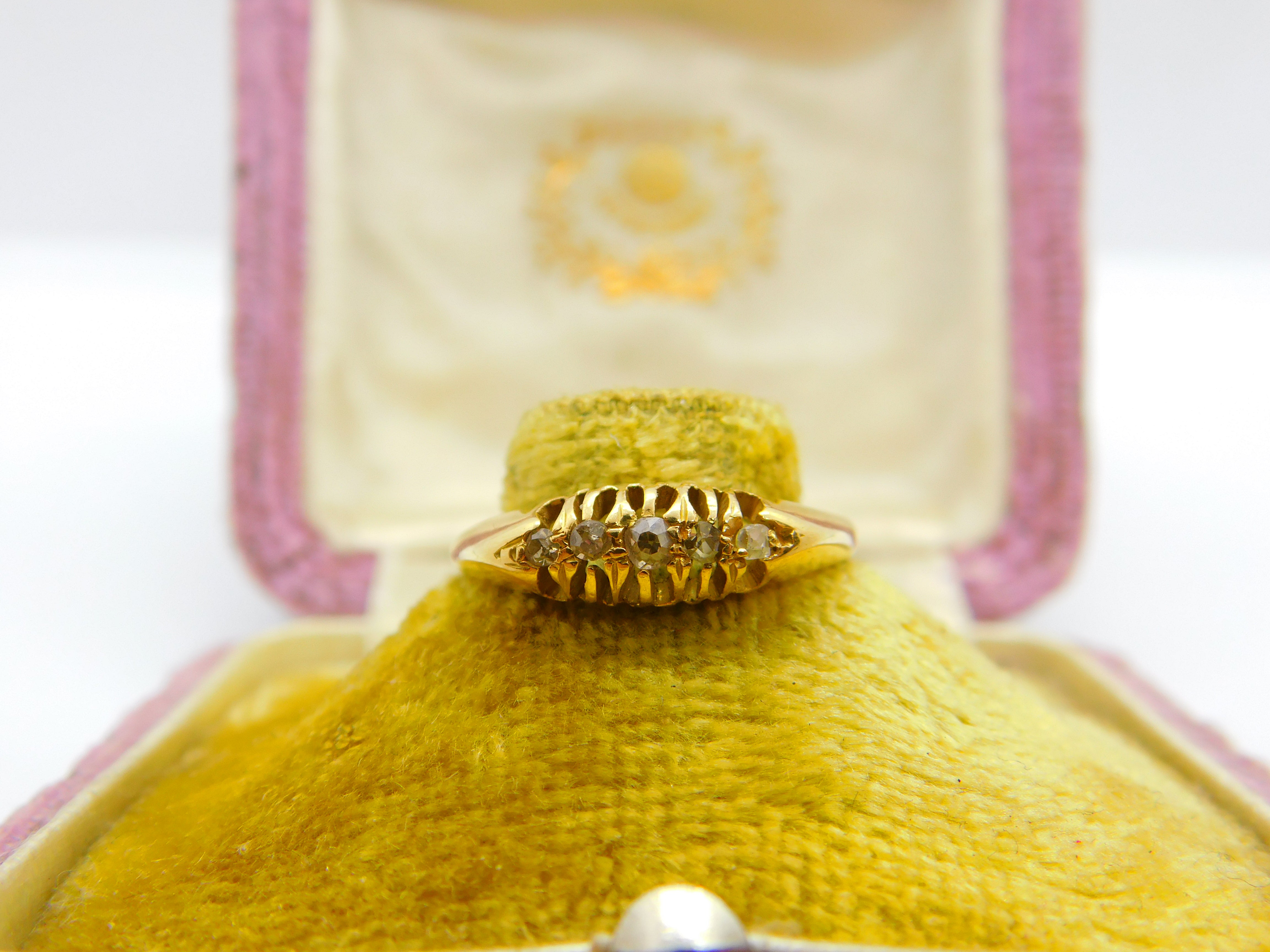 Victorian 18ct Gold & Five-Stone 0.1ct Diamond Boat Ring Antique c1890