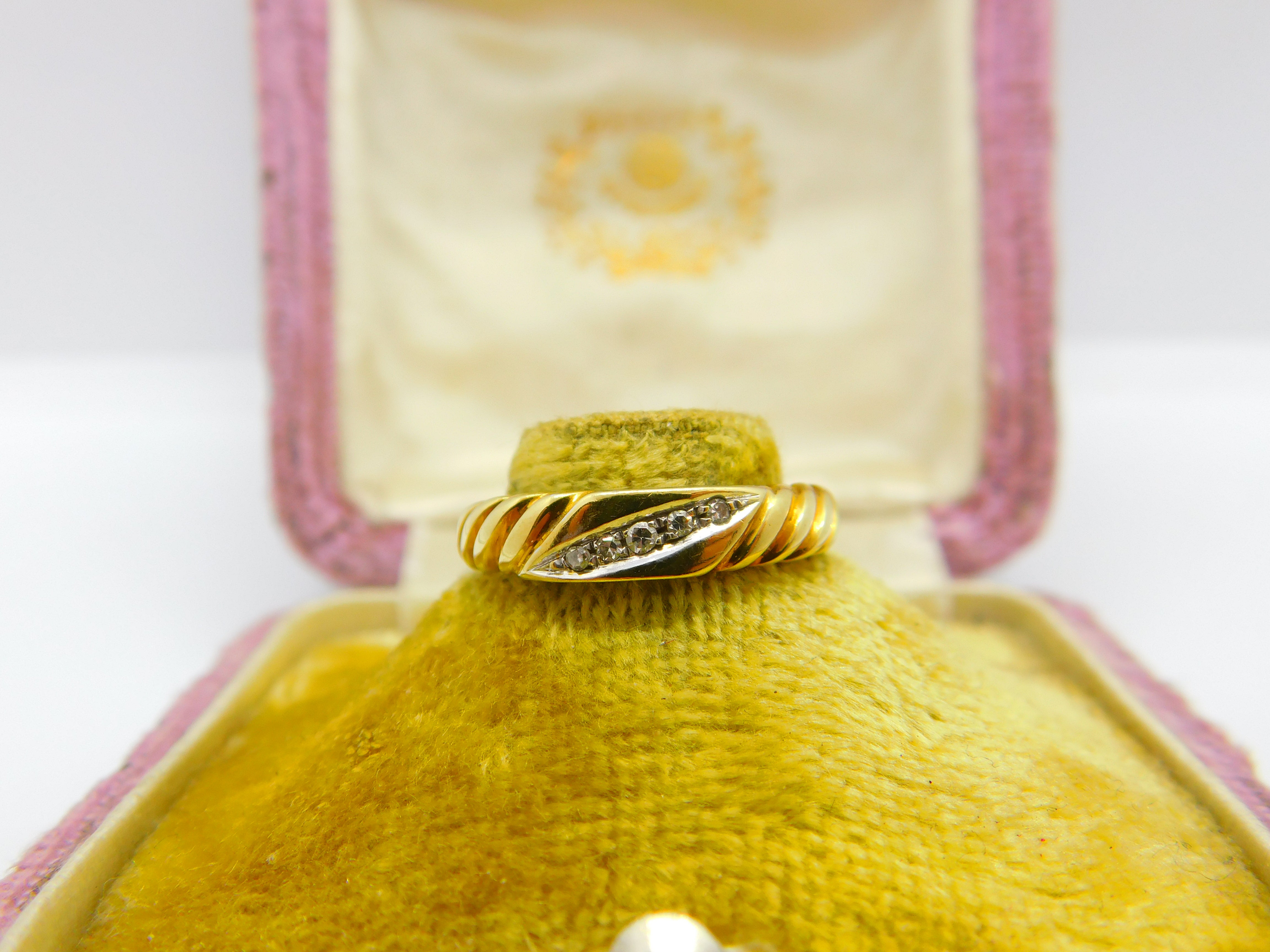 18ct Yellow Gold & Five-Stone Diamond Twist Ring Vintage c1970 Size L 1/2 UK