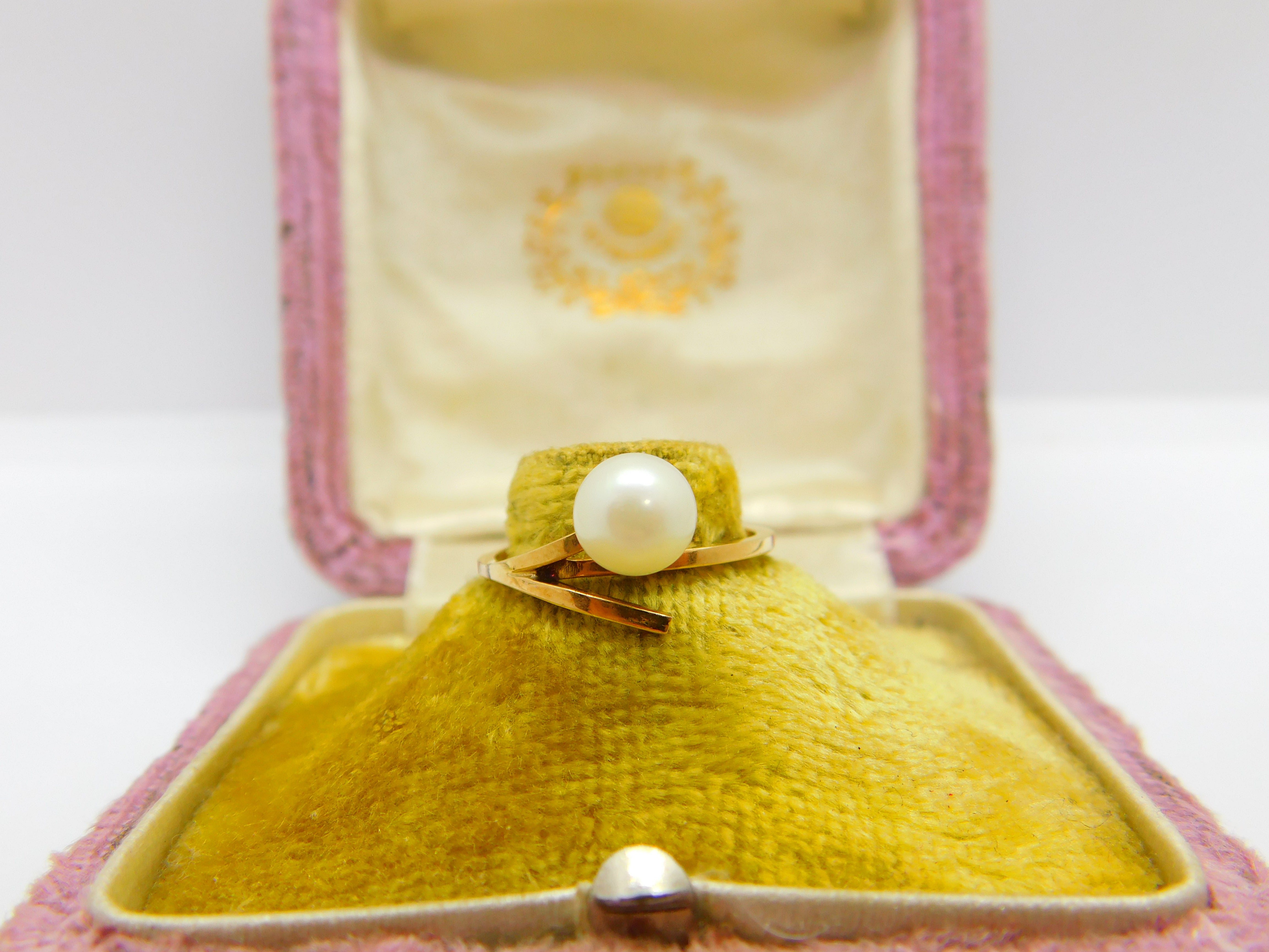 18ct Yellow Gold & Pearl Set Modernist Twist Band Ring Vintage c1970 Size J UK