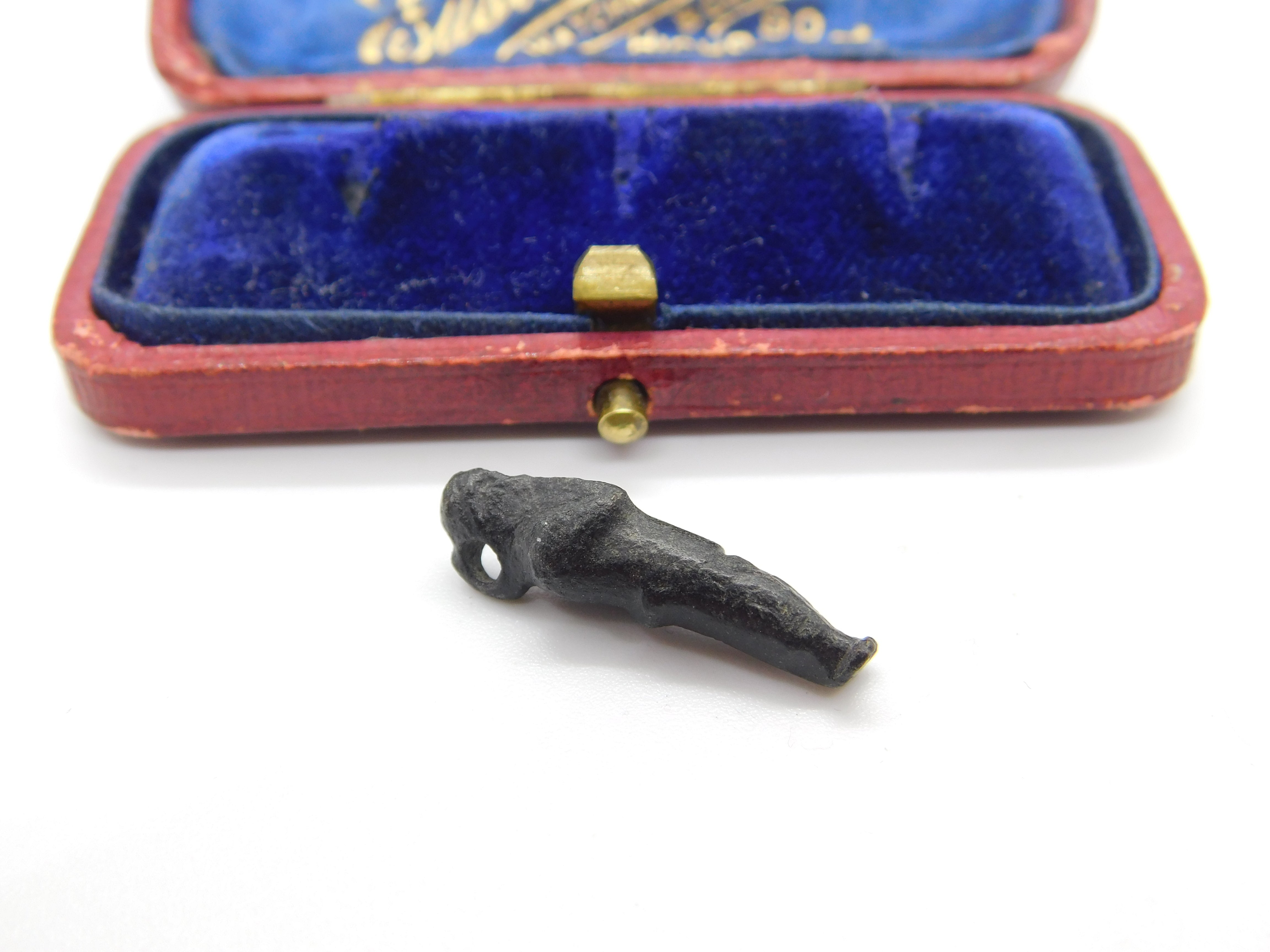Ancient Roman Case Bronze Harpocrates Charm or Pendant circa 200 AD