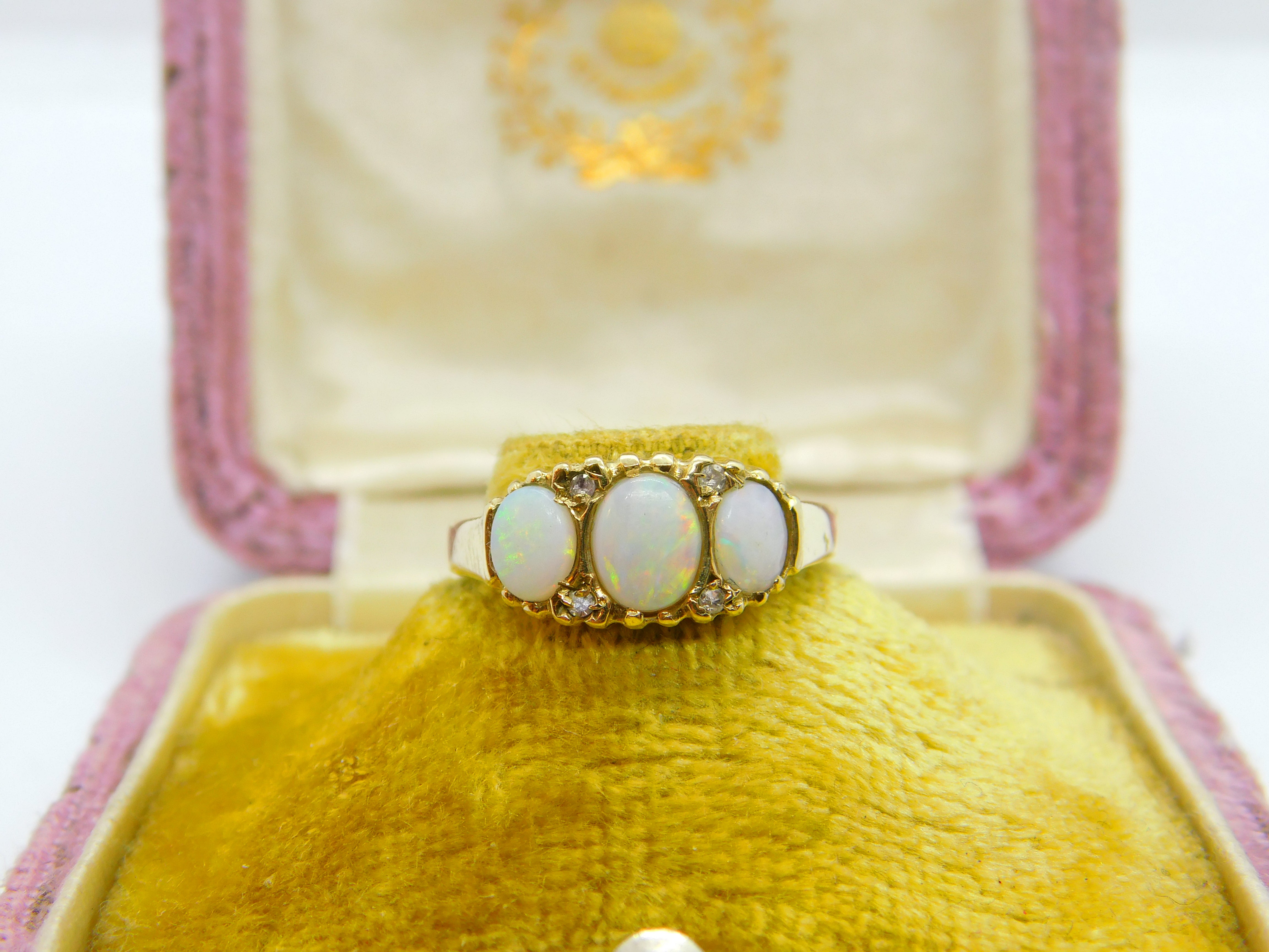 Victorian 18ct Yellow Gold & Claw Set 0.1ct Diamond Band Ring Antique c1900
