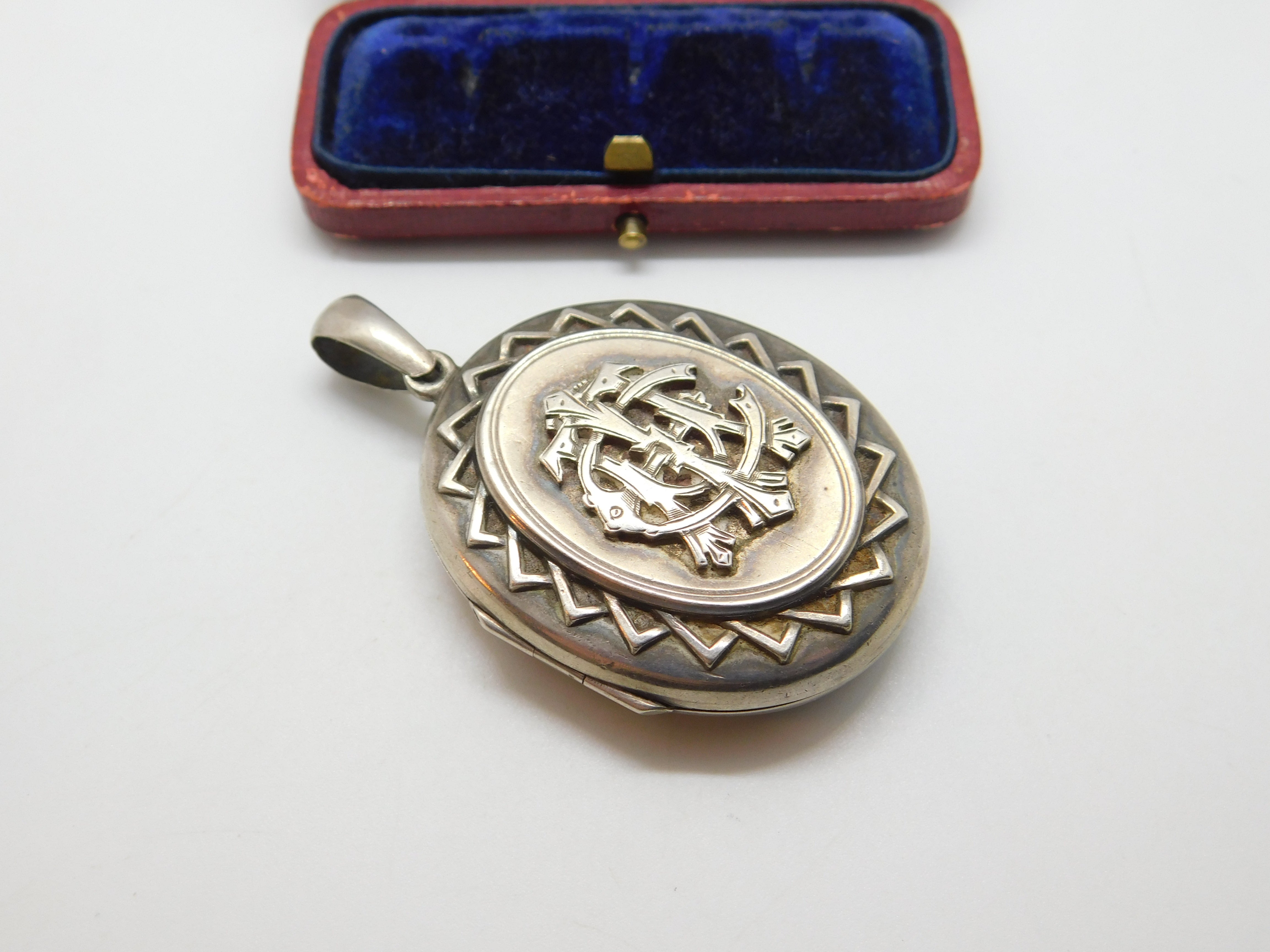 Victorian Sterling Silver Monogram Mourning Locket Pendant Antique c1860