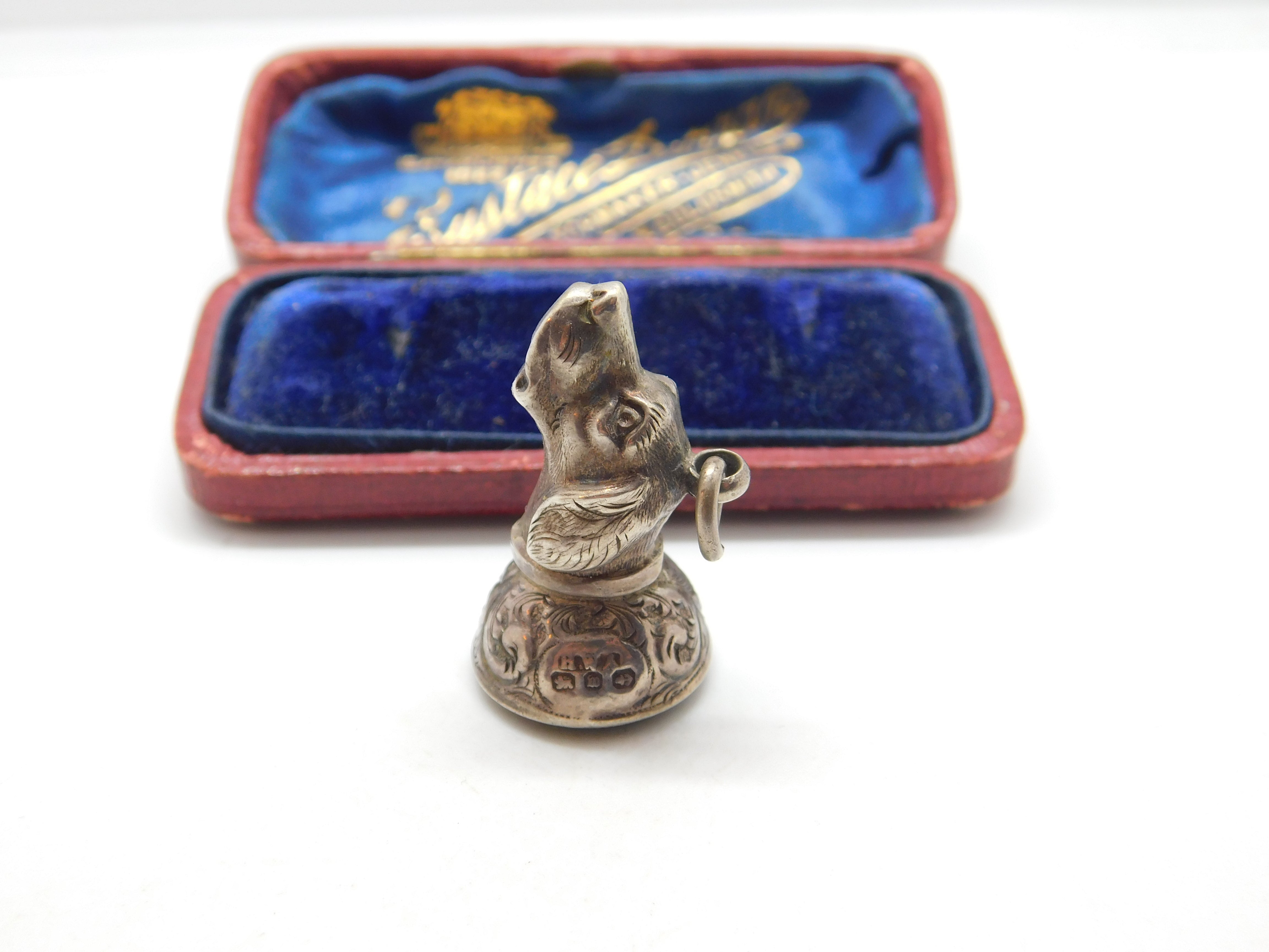 Victorian Sterling Silver Bloodstone Hound Dog Fob Seal Antique 1886 Birmingham