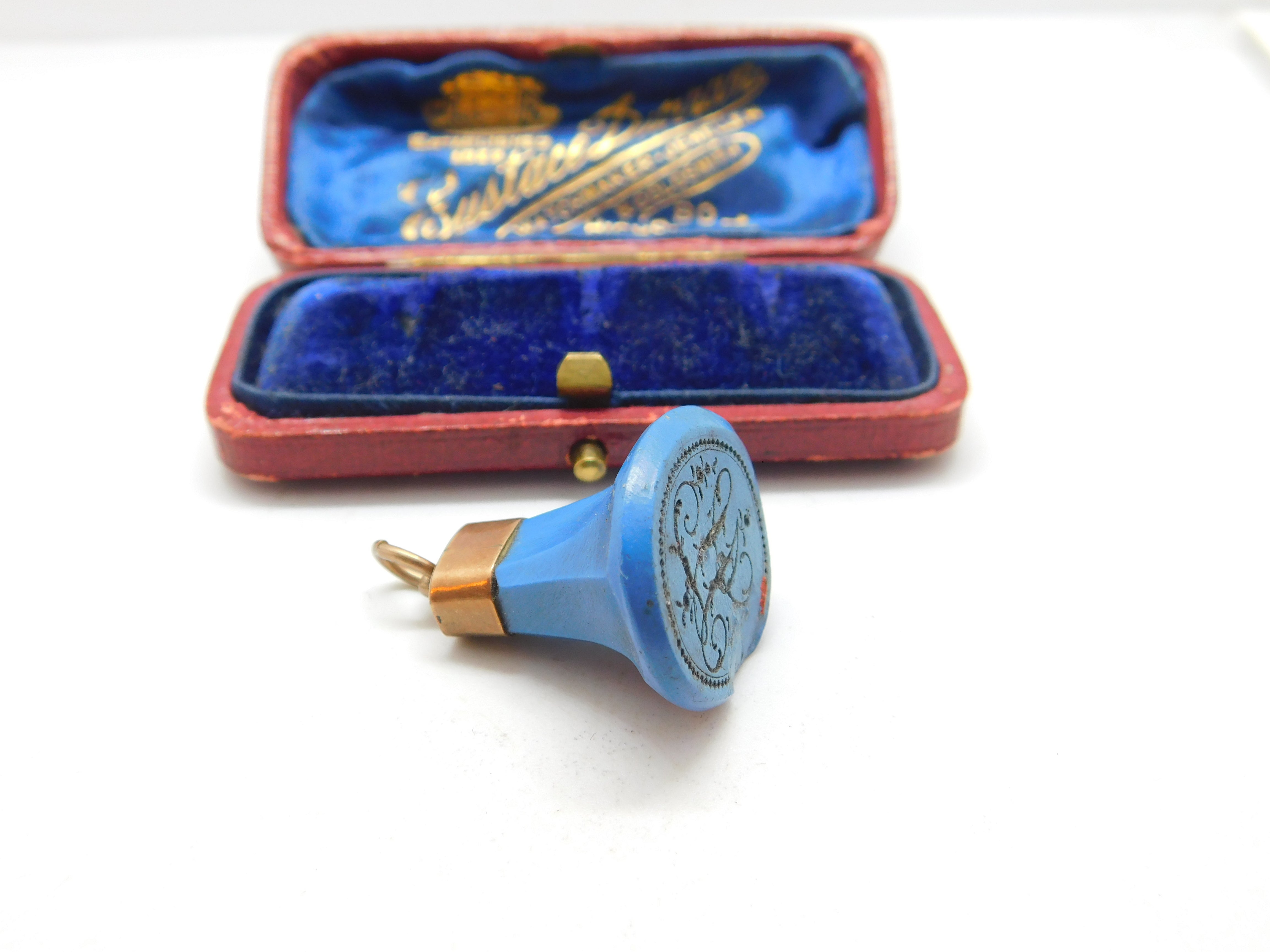 Georgian 9ct Rose Gold & Blue Hardstone Initial Intaglio Fob Antique c1800