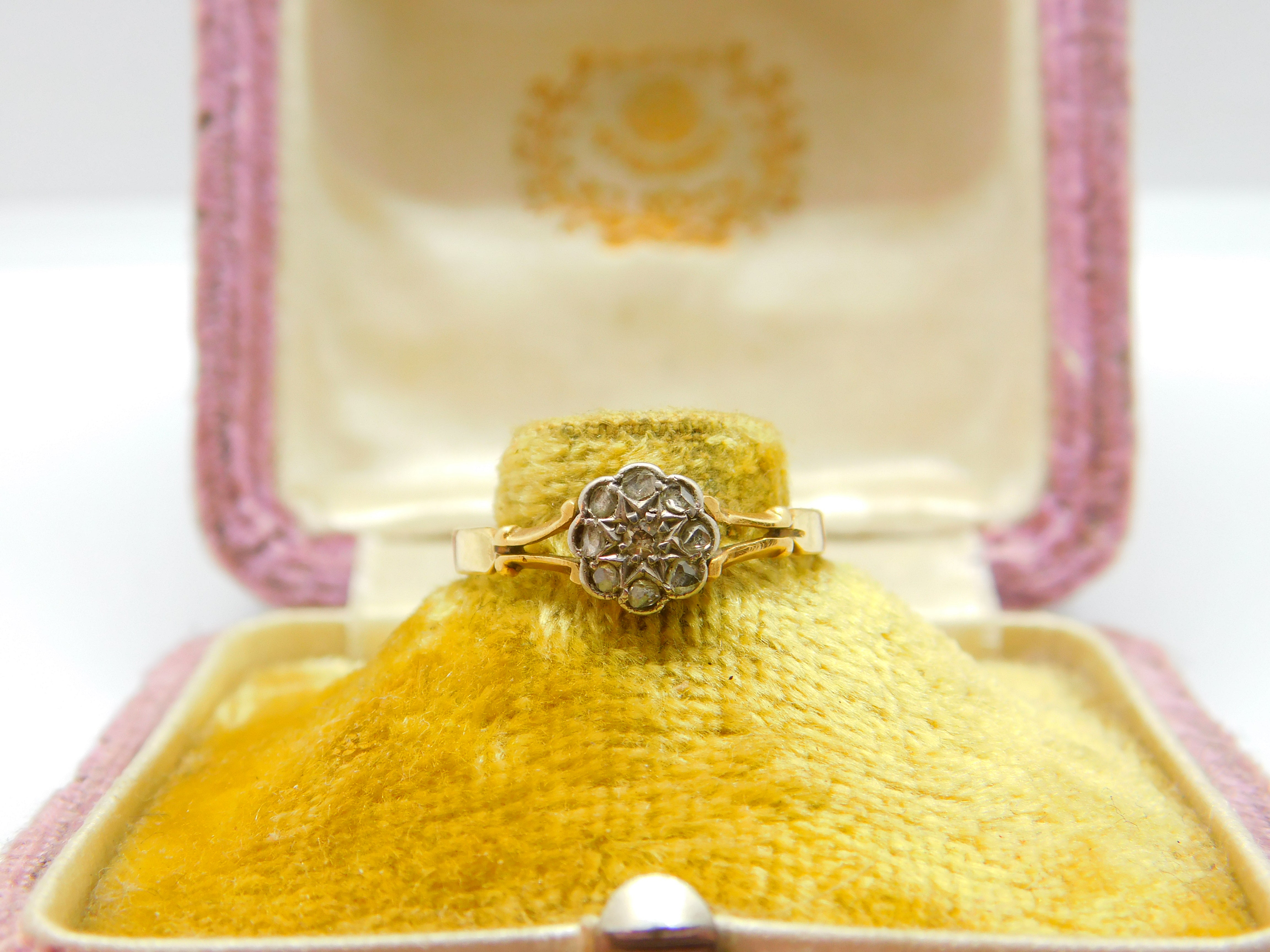 Victorian 18ct Yellow Gold & Diamond Daisy Flower Ring Antique c1890 Size M 1/2
