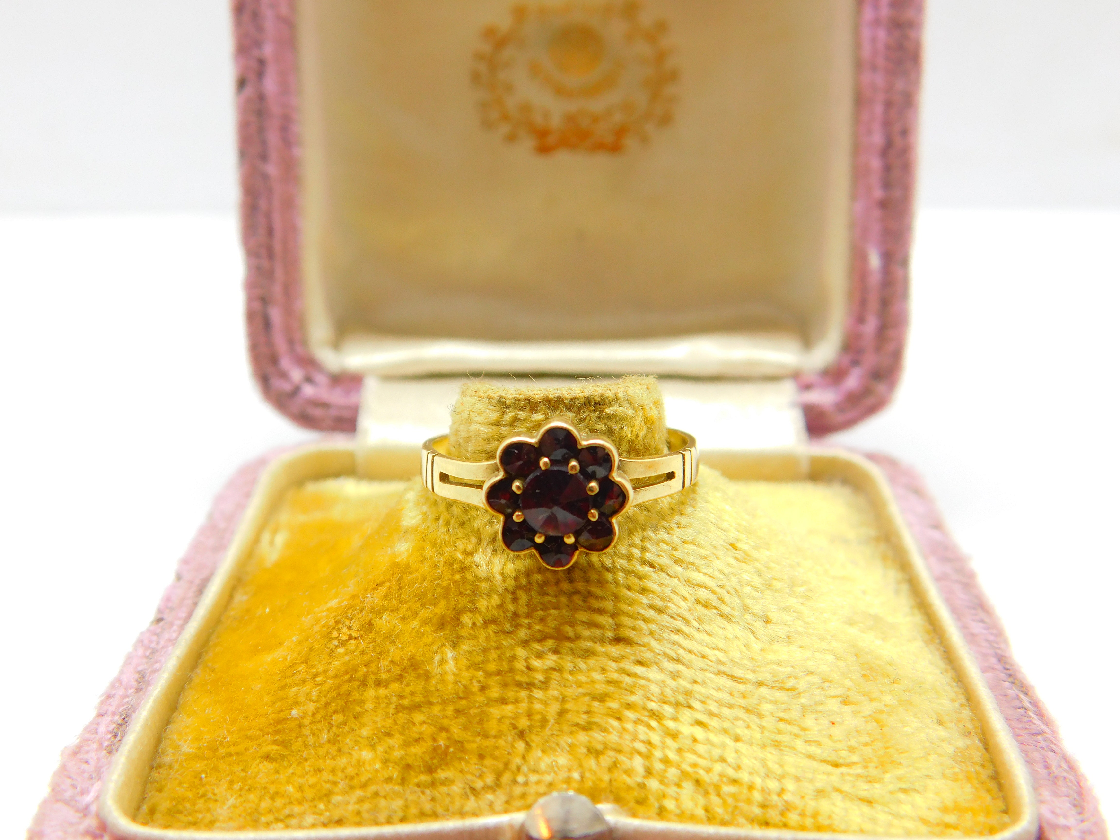 Austrian 14ct Yellow Gold & Bohemian Garnet Cluster Ring Antique c1940 Deco