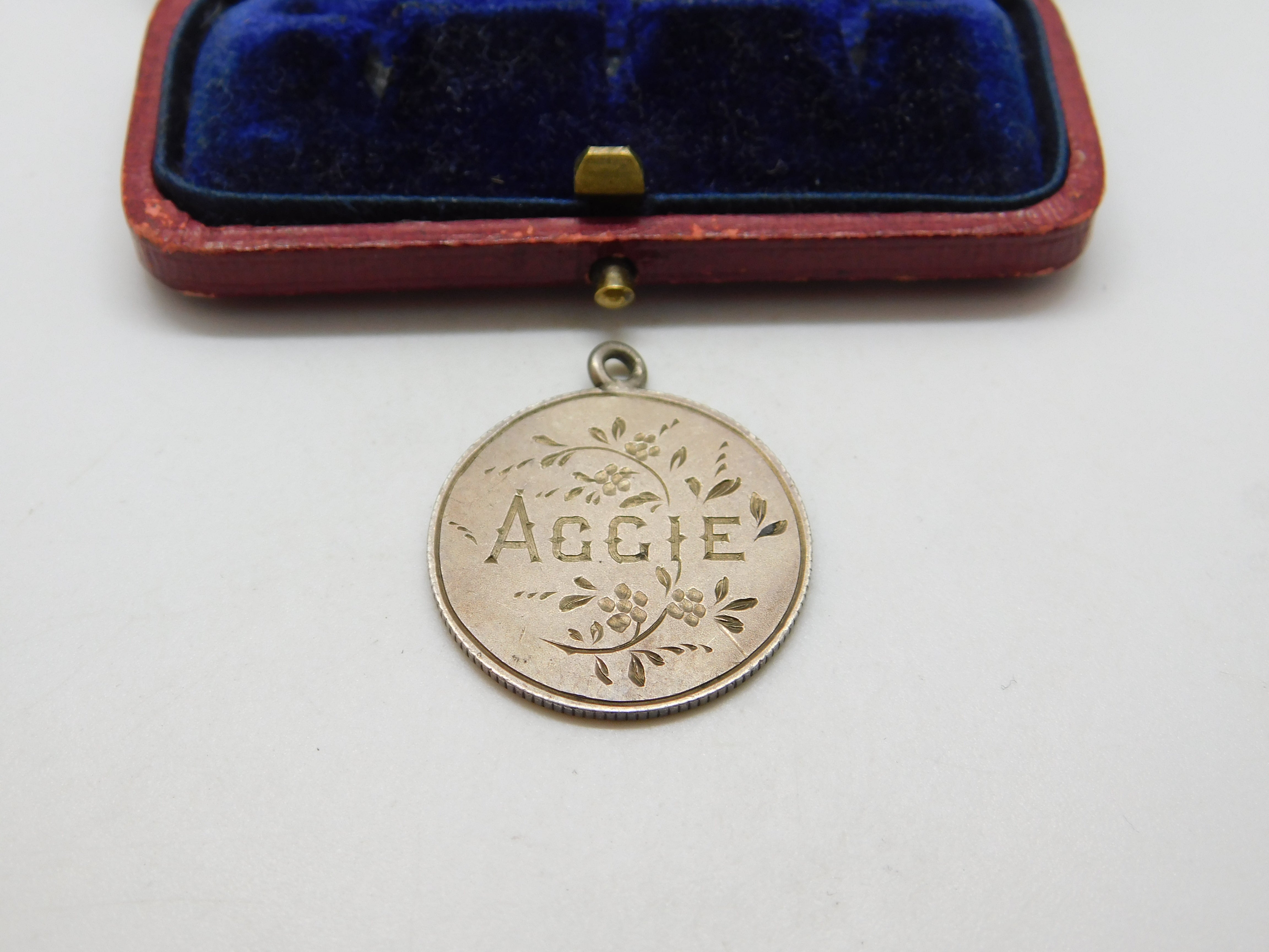 Victorian Canadian Sterling Silver 'Aggie' Love Token Shilling Pendant Antique