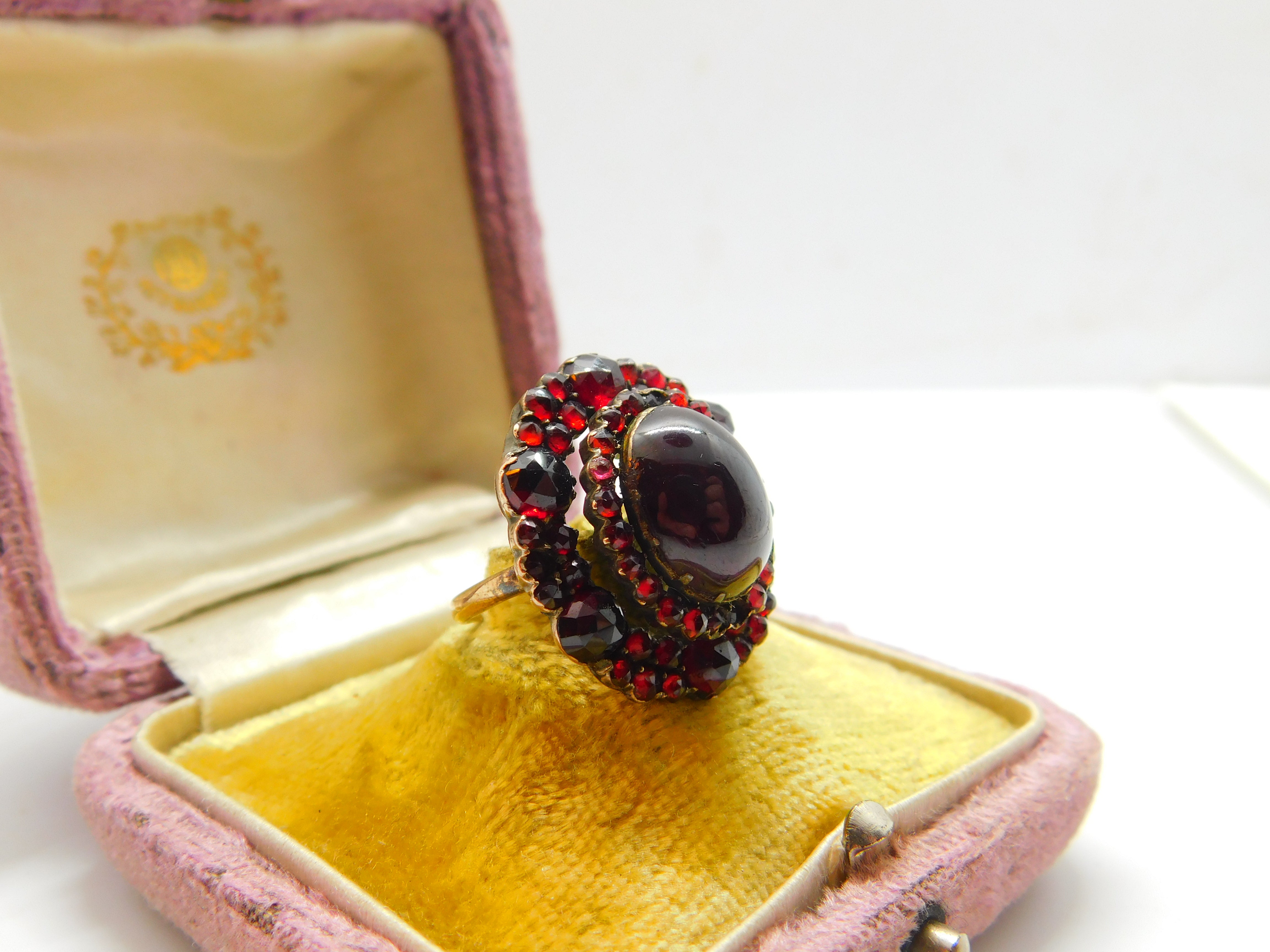 Austro-Hungarian Victorian 9ct Gold & Bohemian Garnet Large Floral Ring Antique