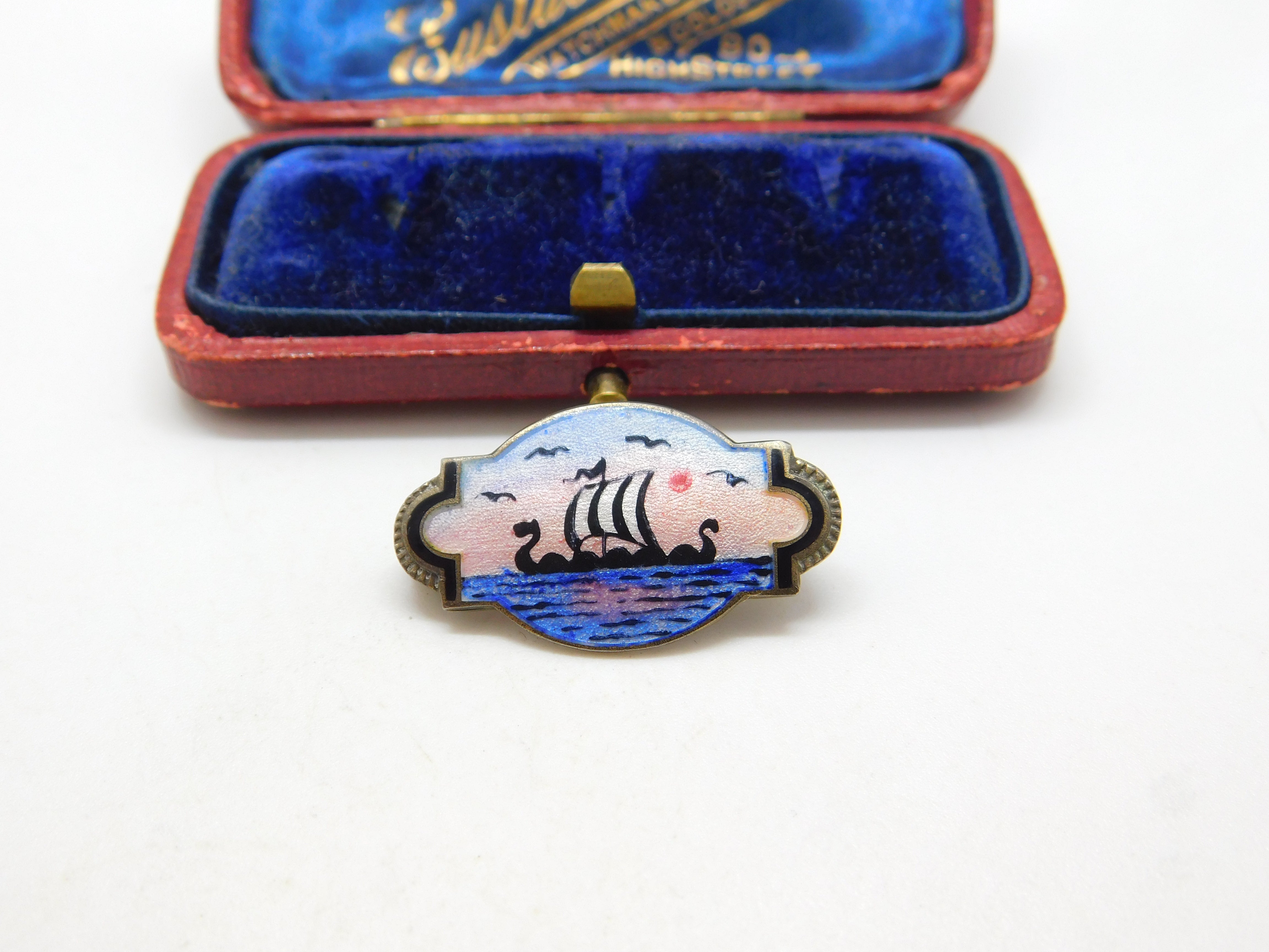 Aksel Holmsen Norwegian Sterling Silver Enamel Viking Ship Brooch Mid-Century