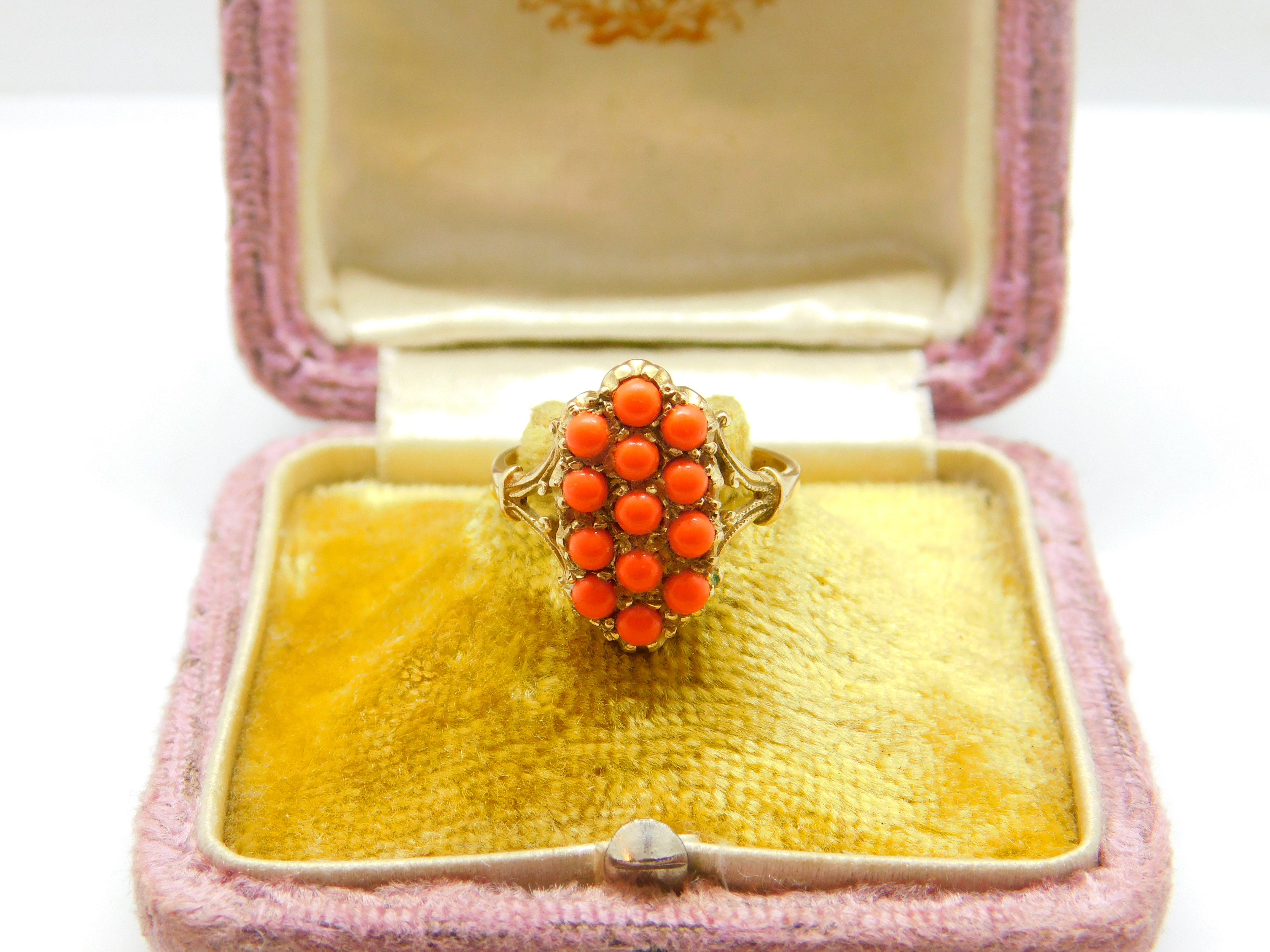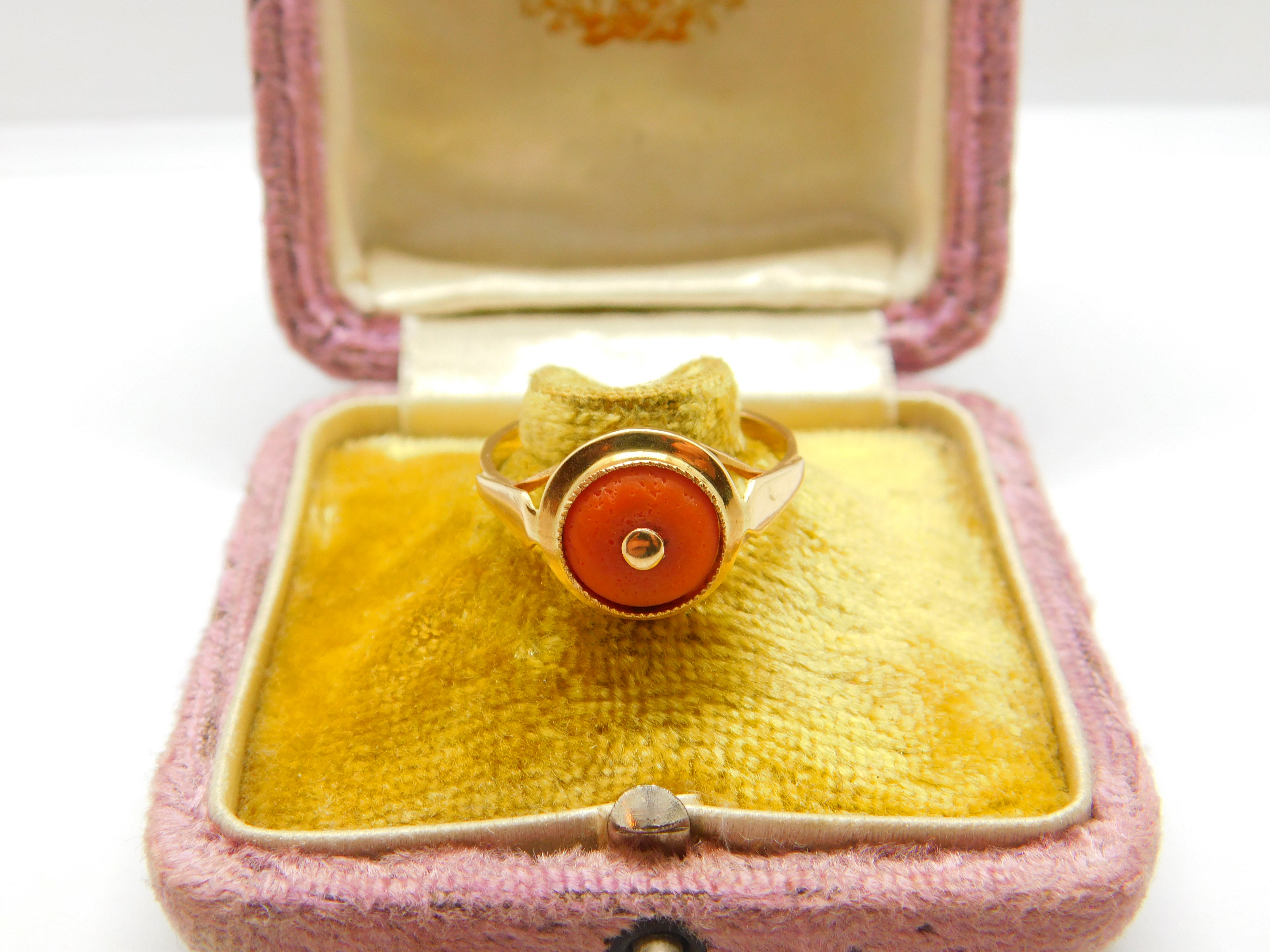 19th Century 10ct Gold, Carved Red Coral Cameo Dress Ring Antique c1880