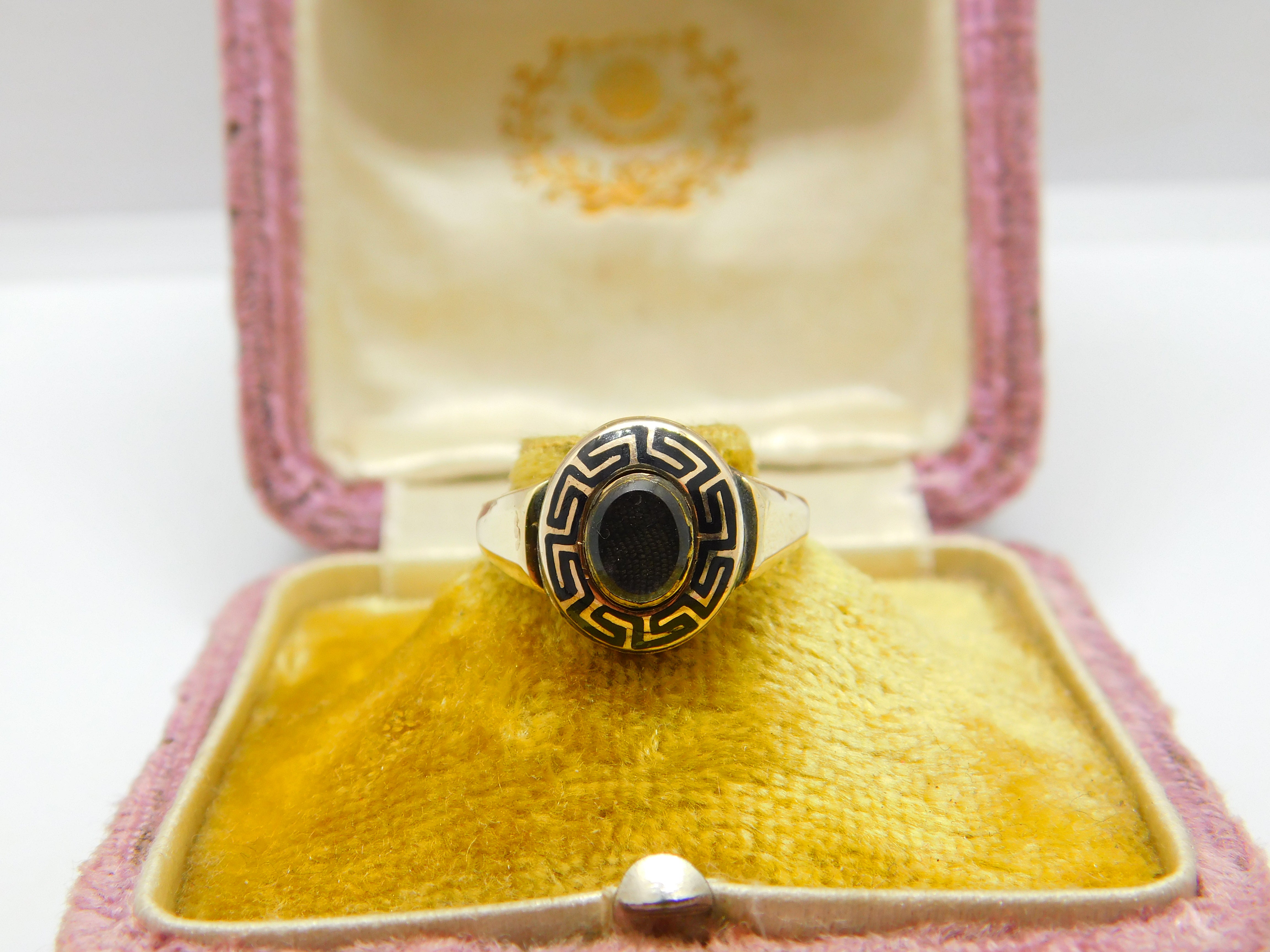 Victorian 9ct Gold, Black Enamel & Hair Mourning Ring Antique 1866 Birmingham