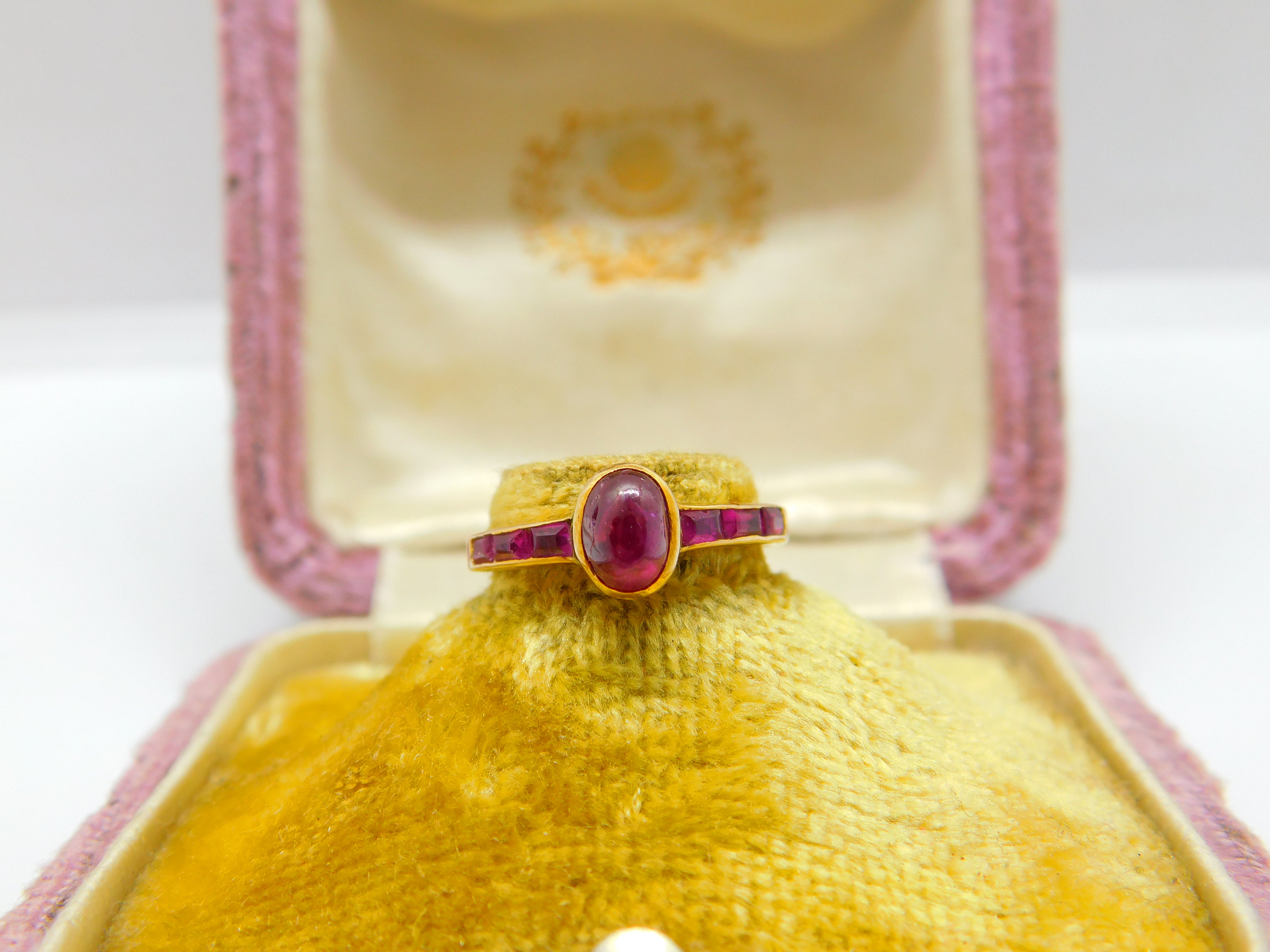 Indian 22ct Yellow Gold & Natural Red Half-Eternity Ring Antique c1930 Art Deco