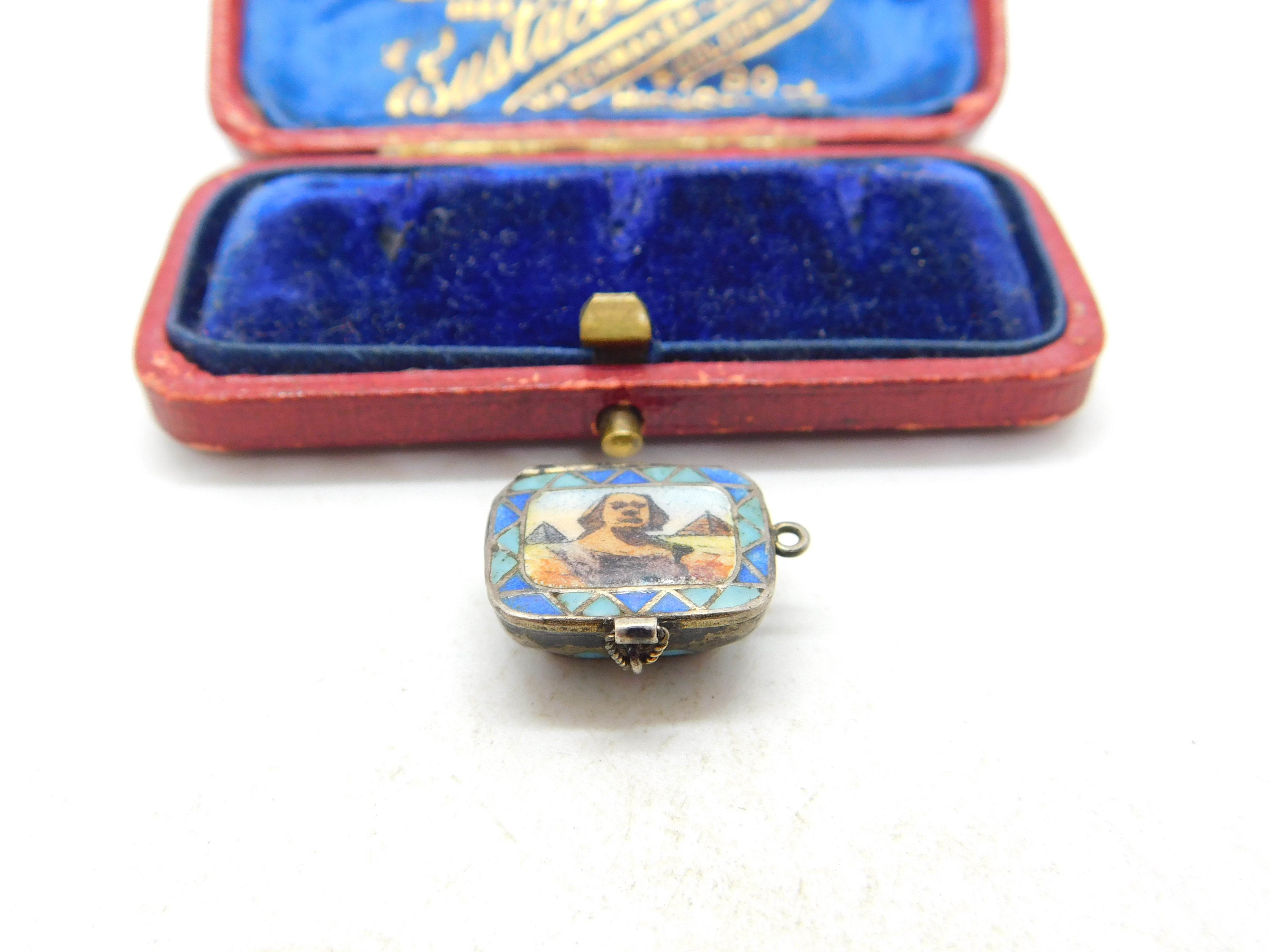 Norwegian Enamel Moses Basket Silver Charm Pendant Antique Egyptian Revival c1920