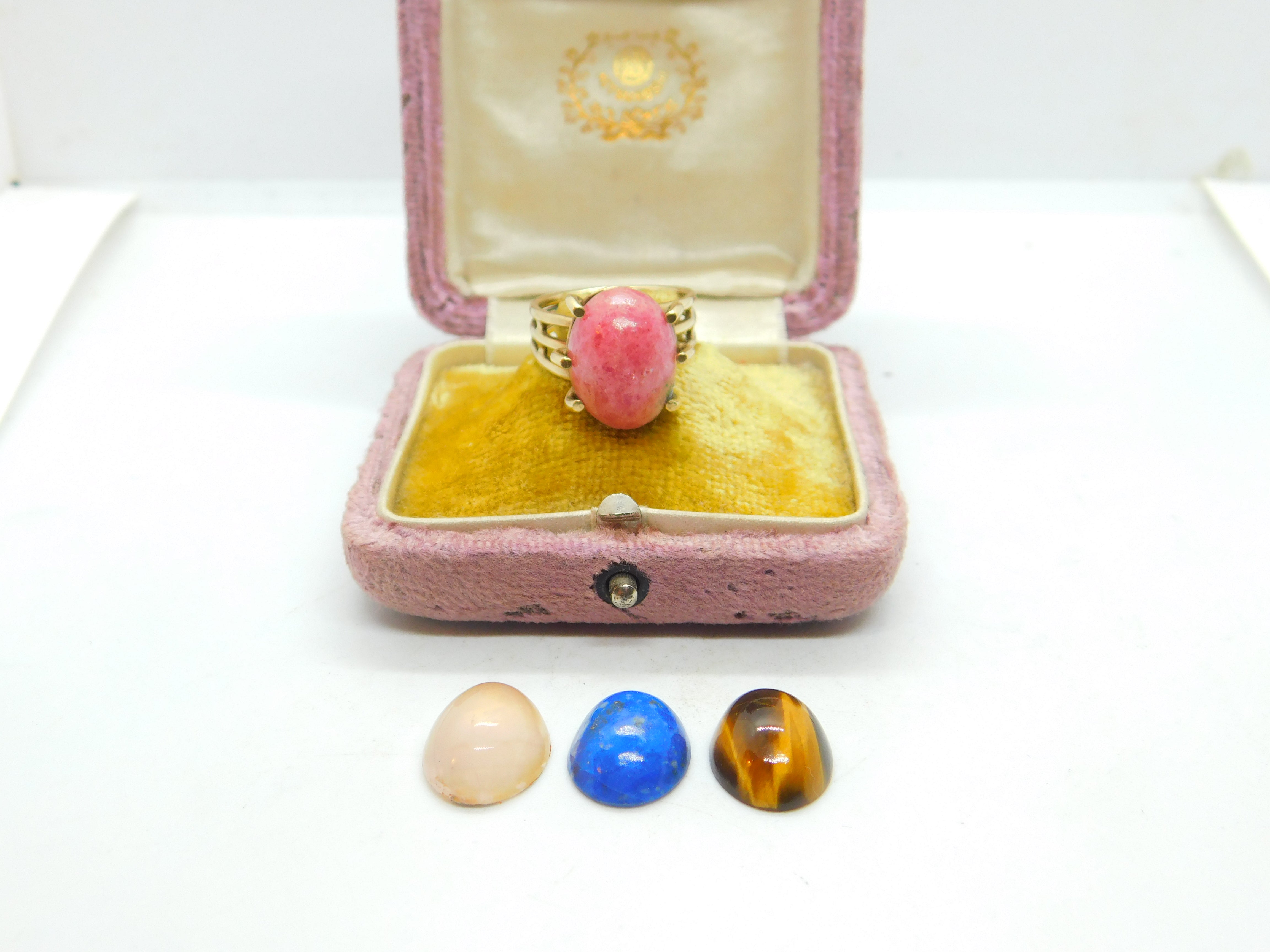 9ct Yellow Gold Ring With Interchangeable Cabochon Stones Vintage c1970