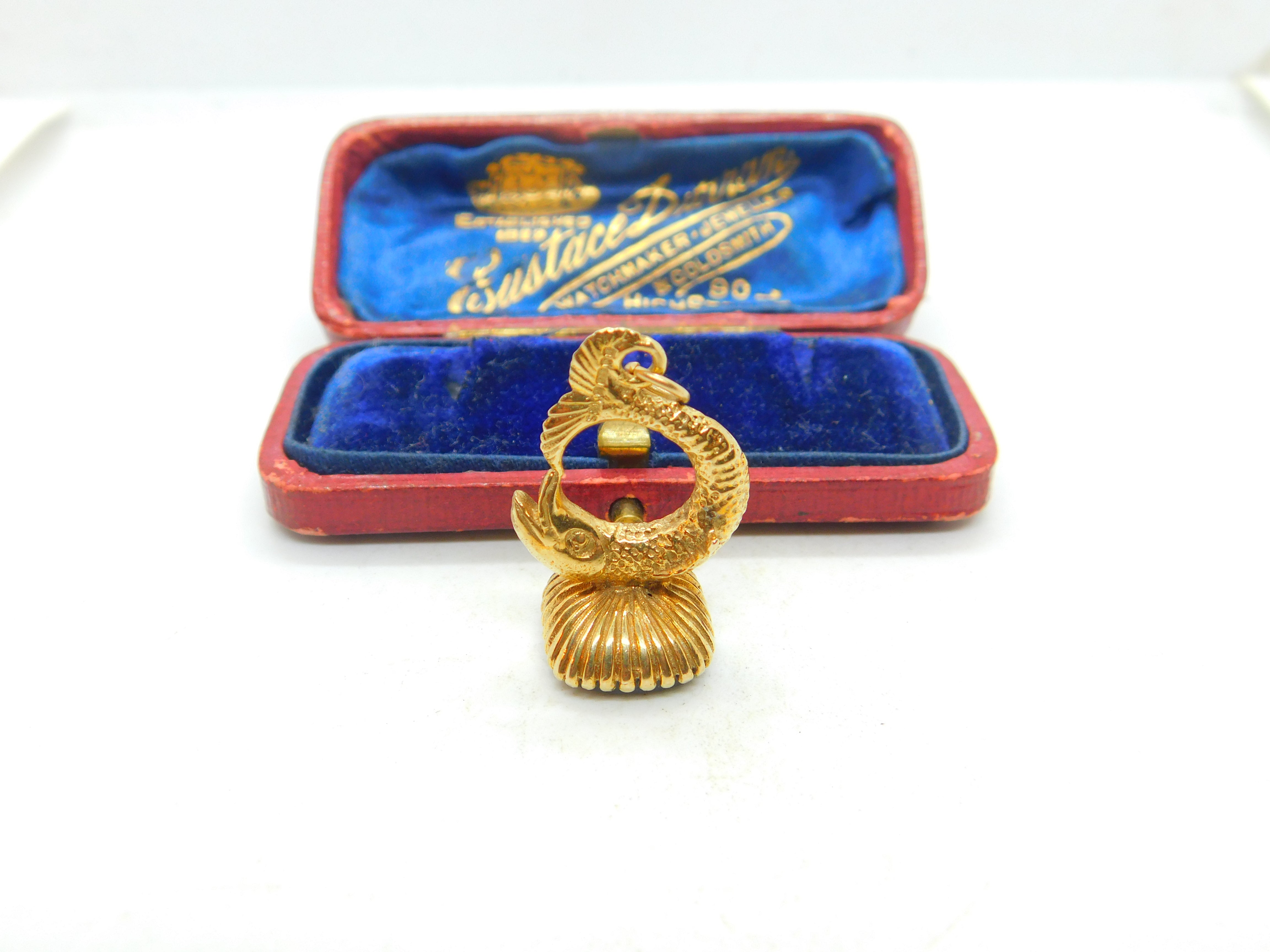 9ct Yellow Gold & Onyx Set Fish Or Dolphin Fob Seal Pendant Vintage 1975 London