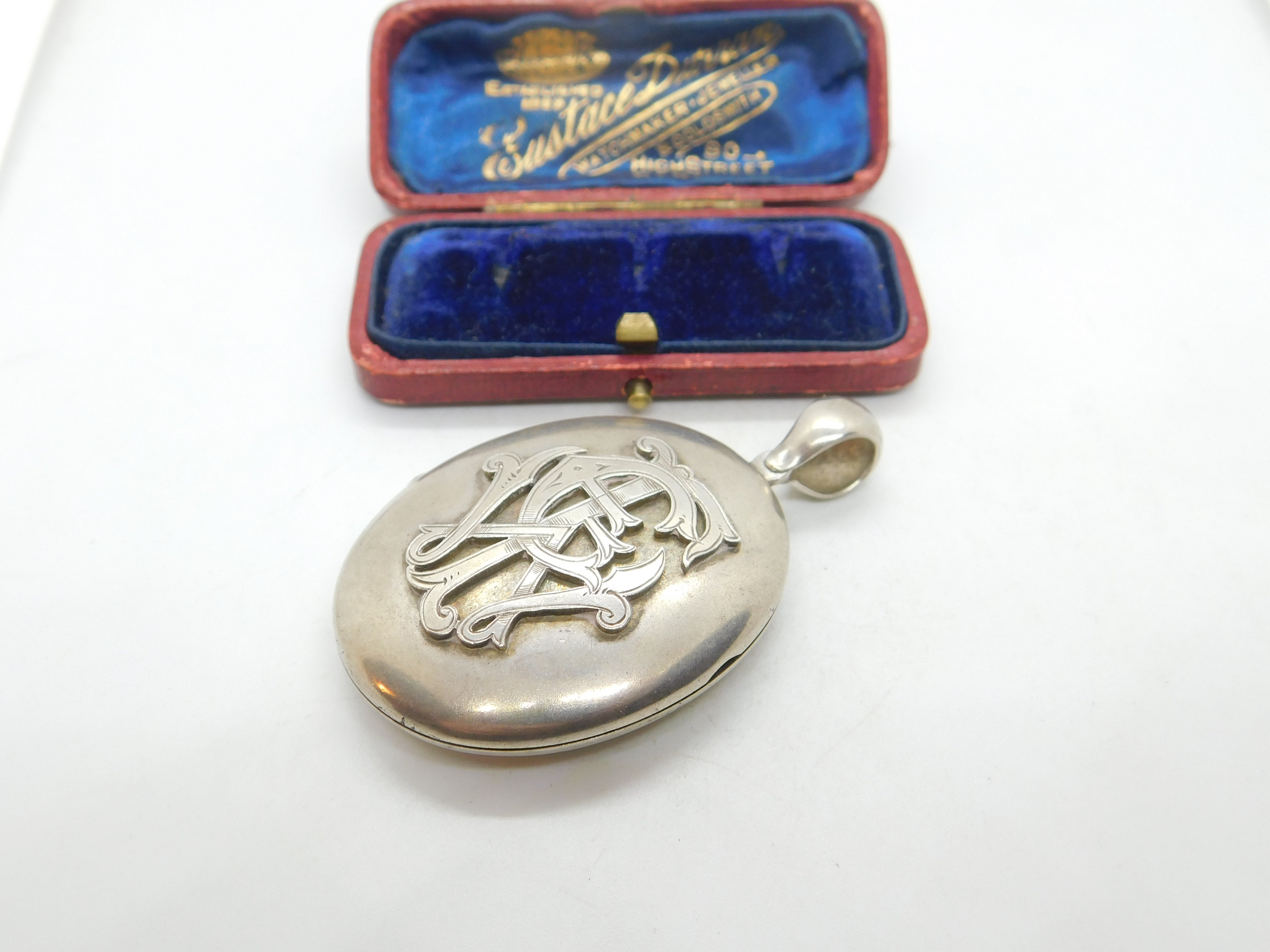 Victorian Sterling Silver & Cryptic Monogram Large Locket Pendant Antique c1860
