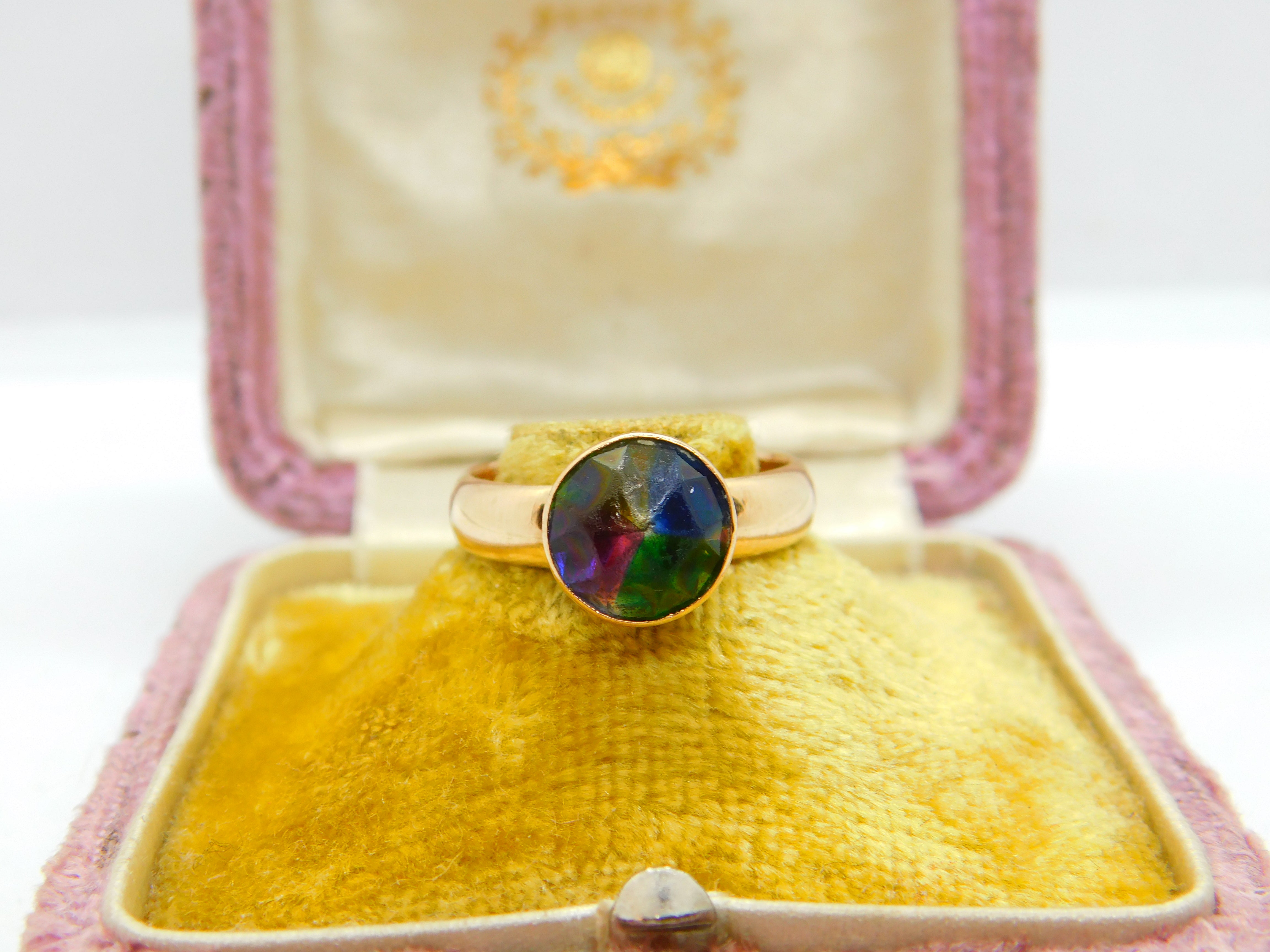 9ct Yellow Gold & Rainbow Glass Band Ring Antique 1937 Birmingham Art Deco