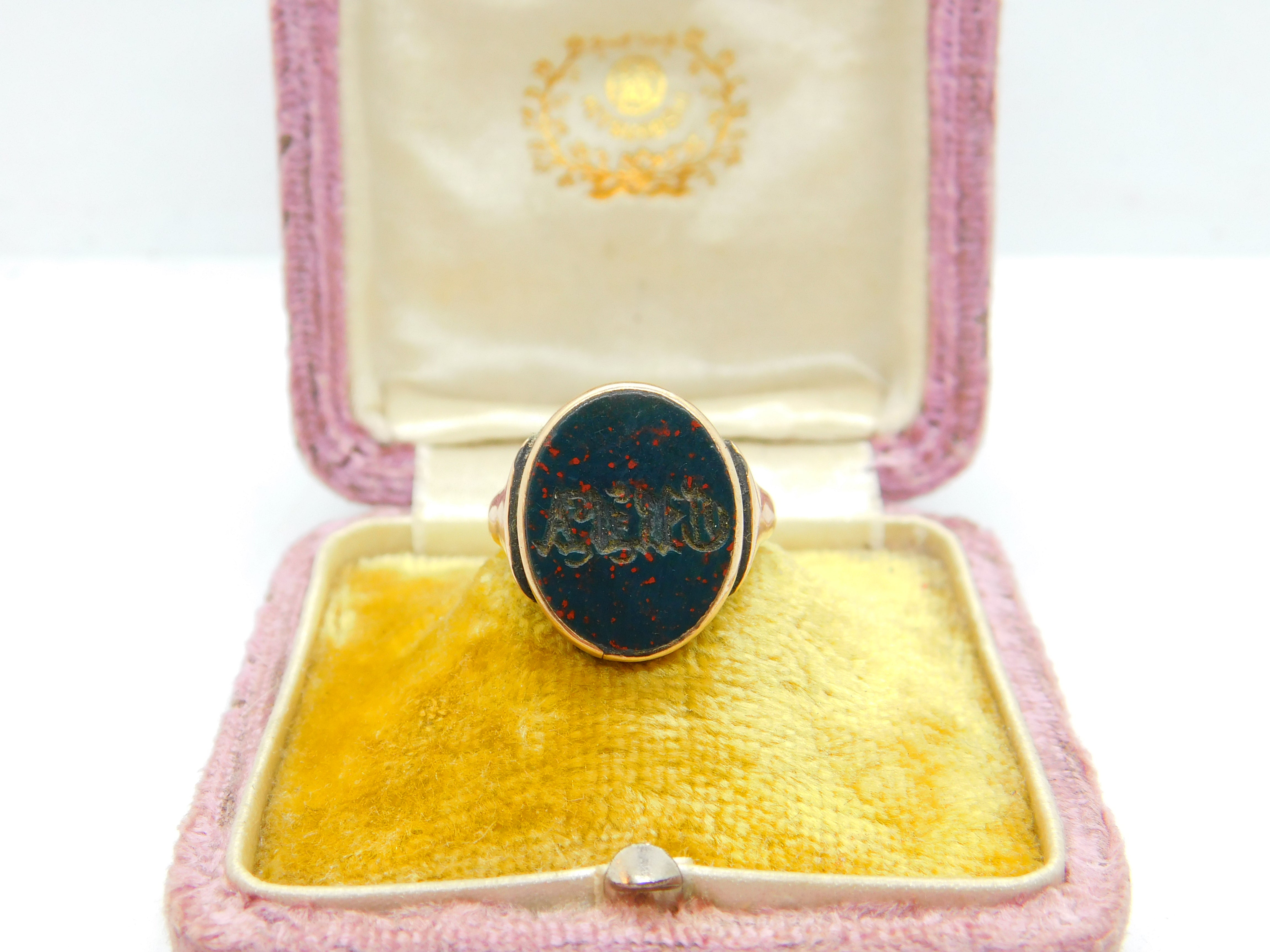 Victorian 9ct Rose Gold & Bloodstone Intaglio Seal Ring Antique c1890