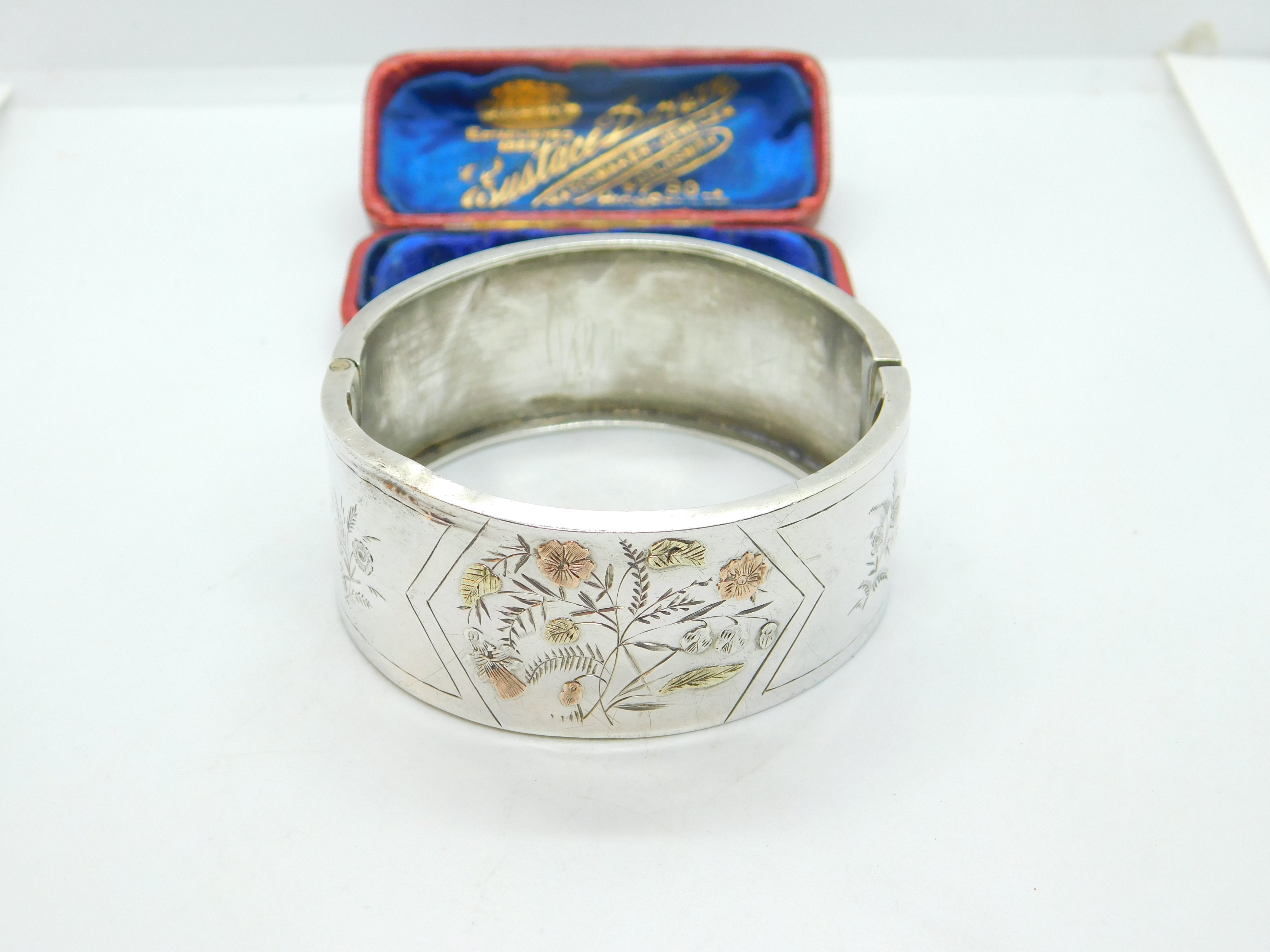 Aesthetic Movement 9ct Gold & Sterling Silver Bangle Bracelet Antique c1860