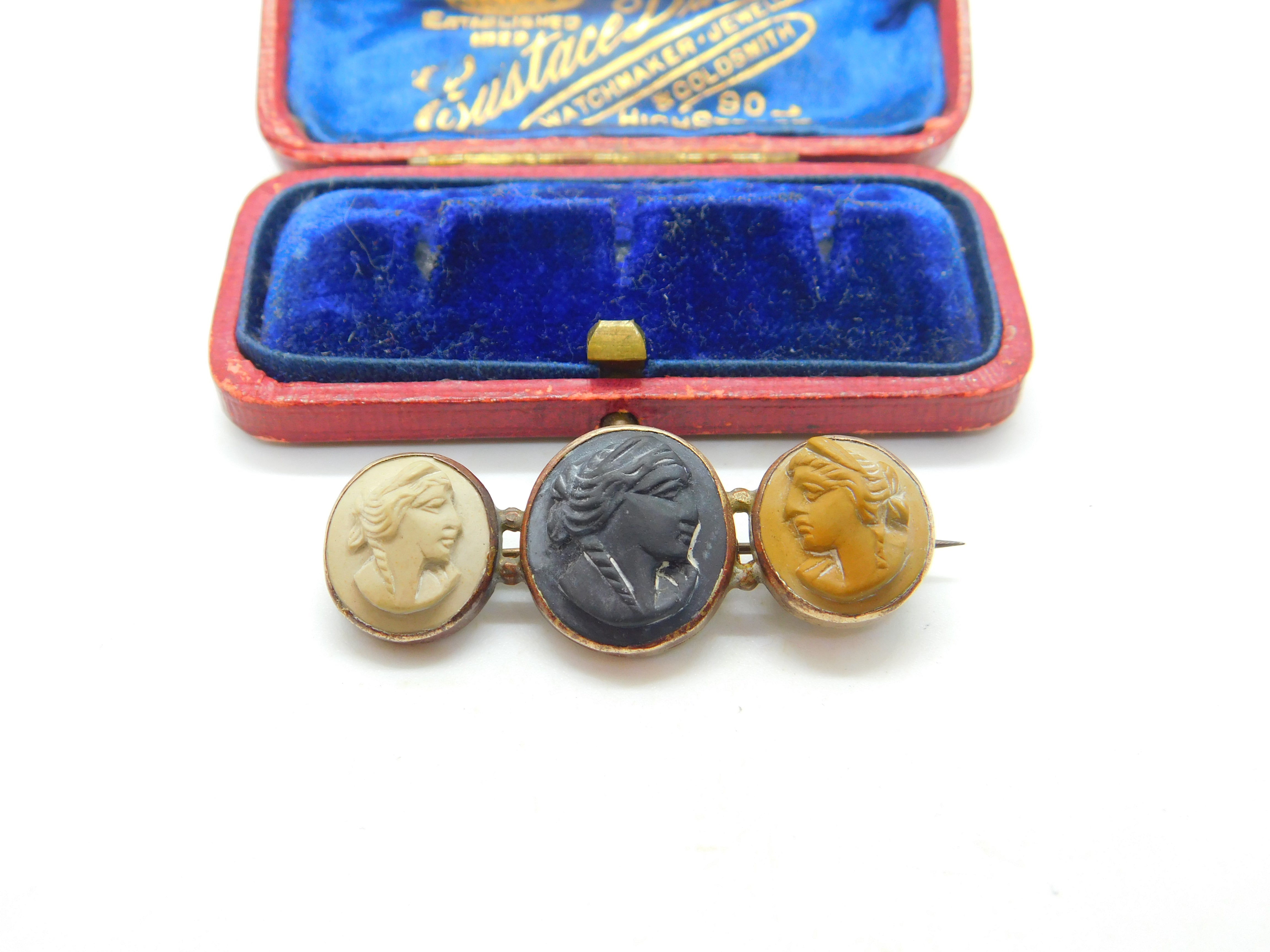 Georgian 9ct Rose Gold, Basalt & Lava High Relief Cameo Brooch Antique c1820
