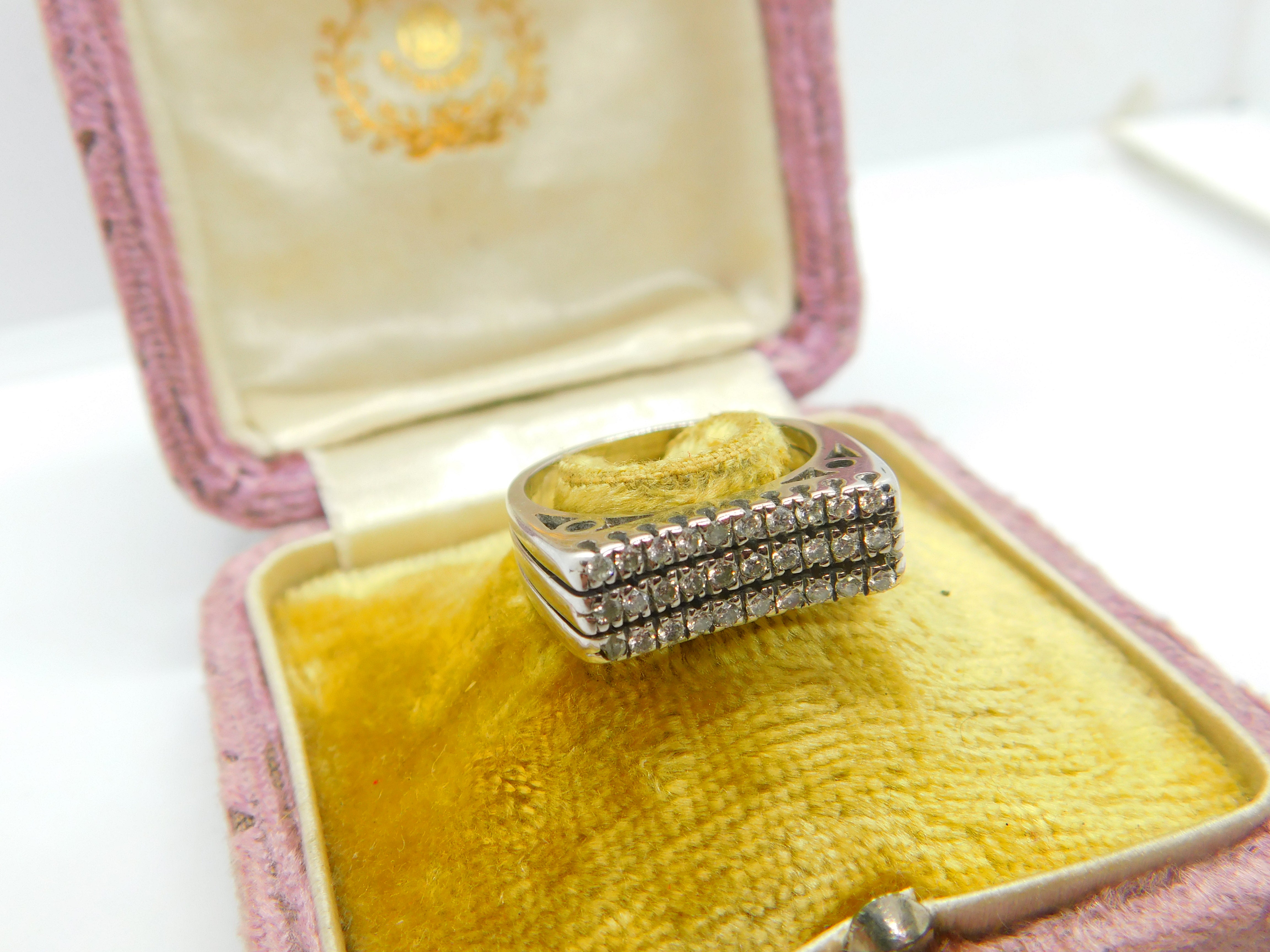 18ct White Gold & 0.6ct Diamond Modernist 3-Tier Ring Vintage c1970 Size O UK