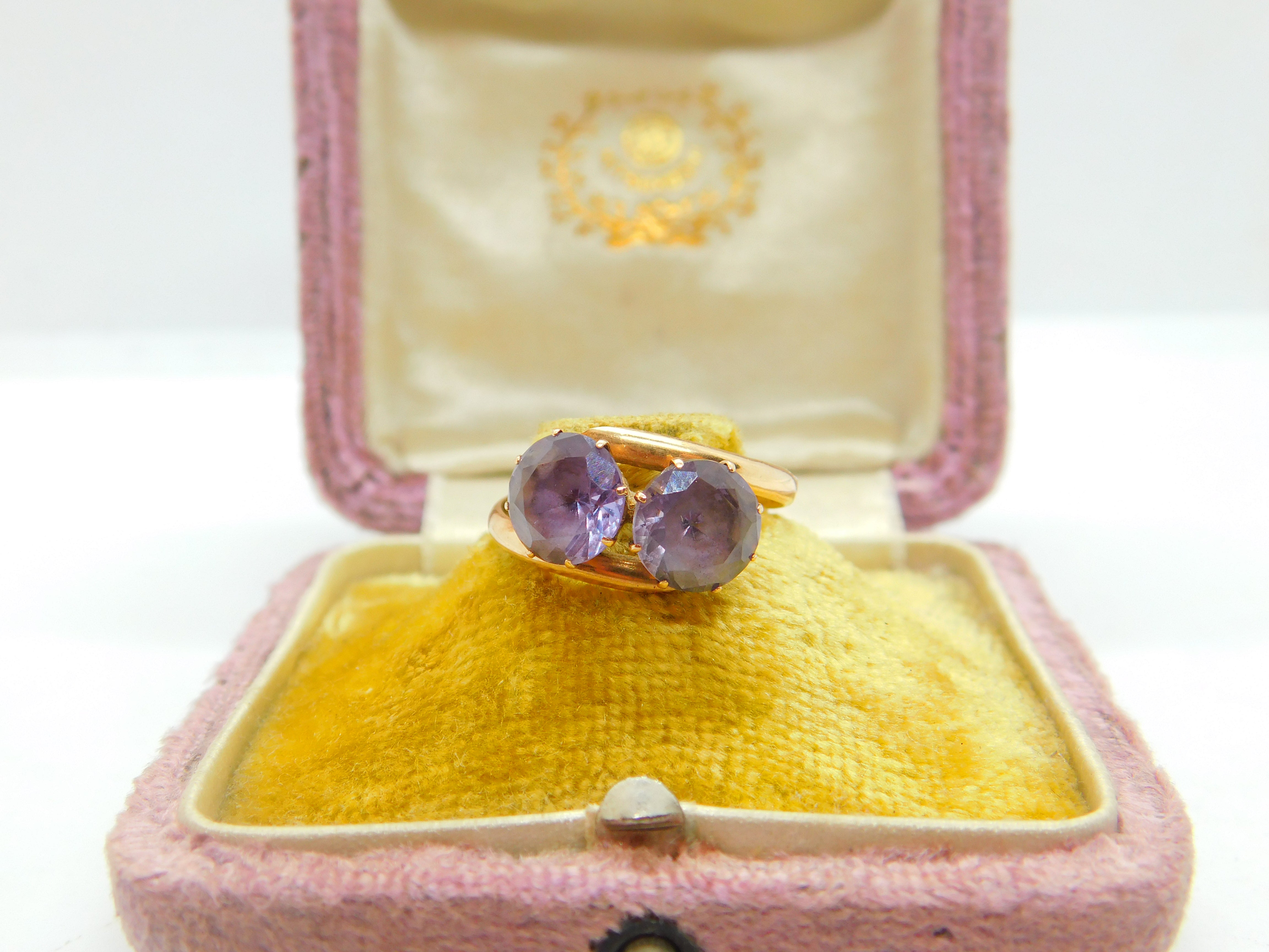 14ct Yellow Gold & Amethyst Dress Ring Vintage c1980 Size O 1/2 UK