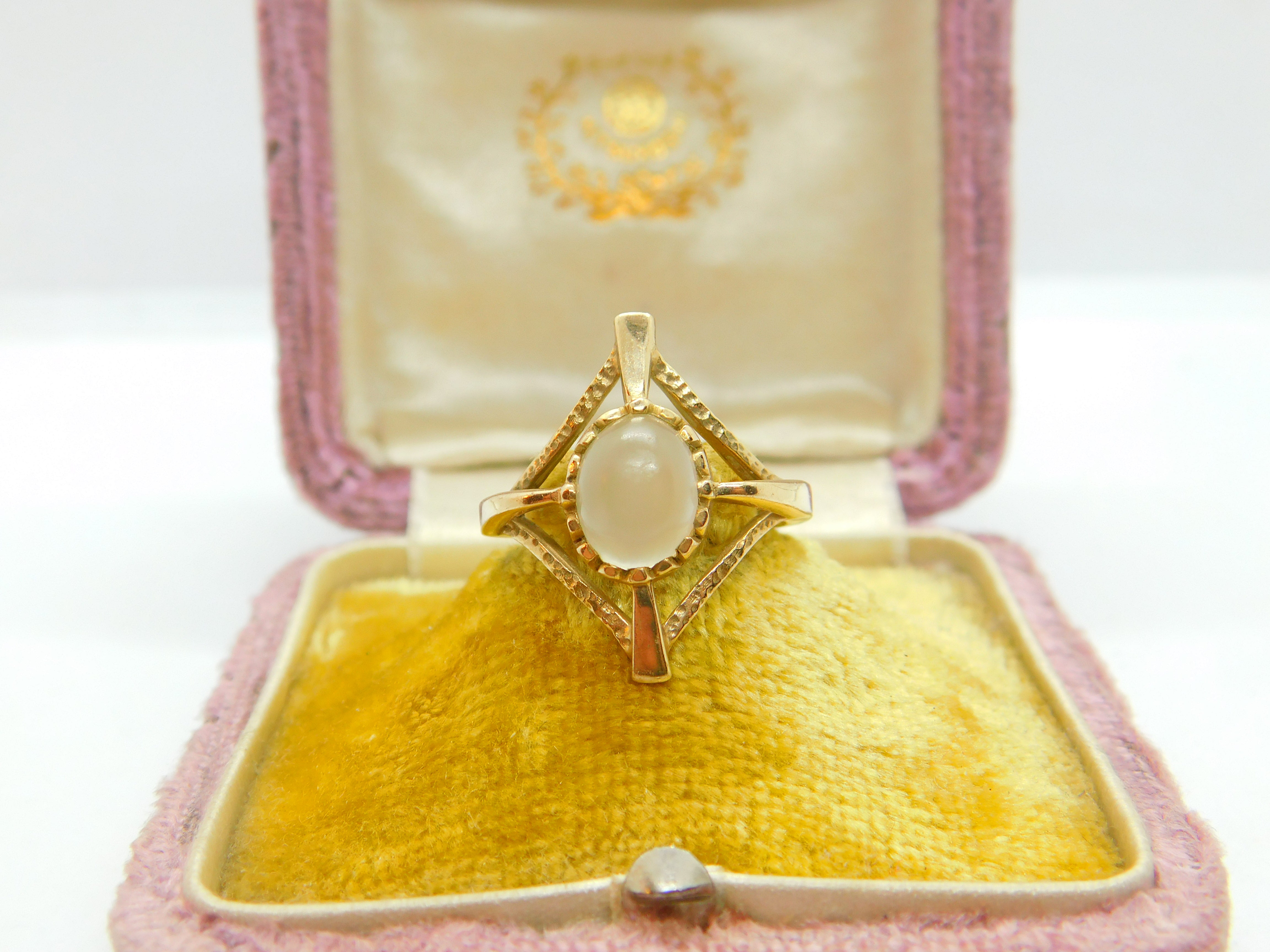 9ct Yellow Gold & Cabochon Moonstone Modernist Dress Ring Vintage 1992 London