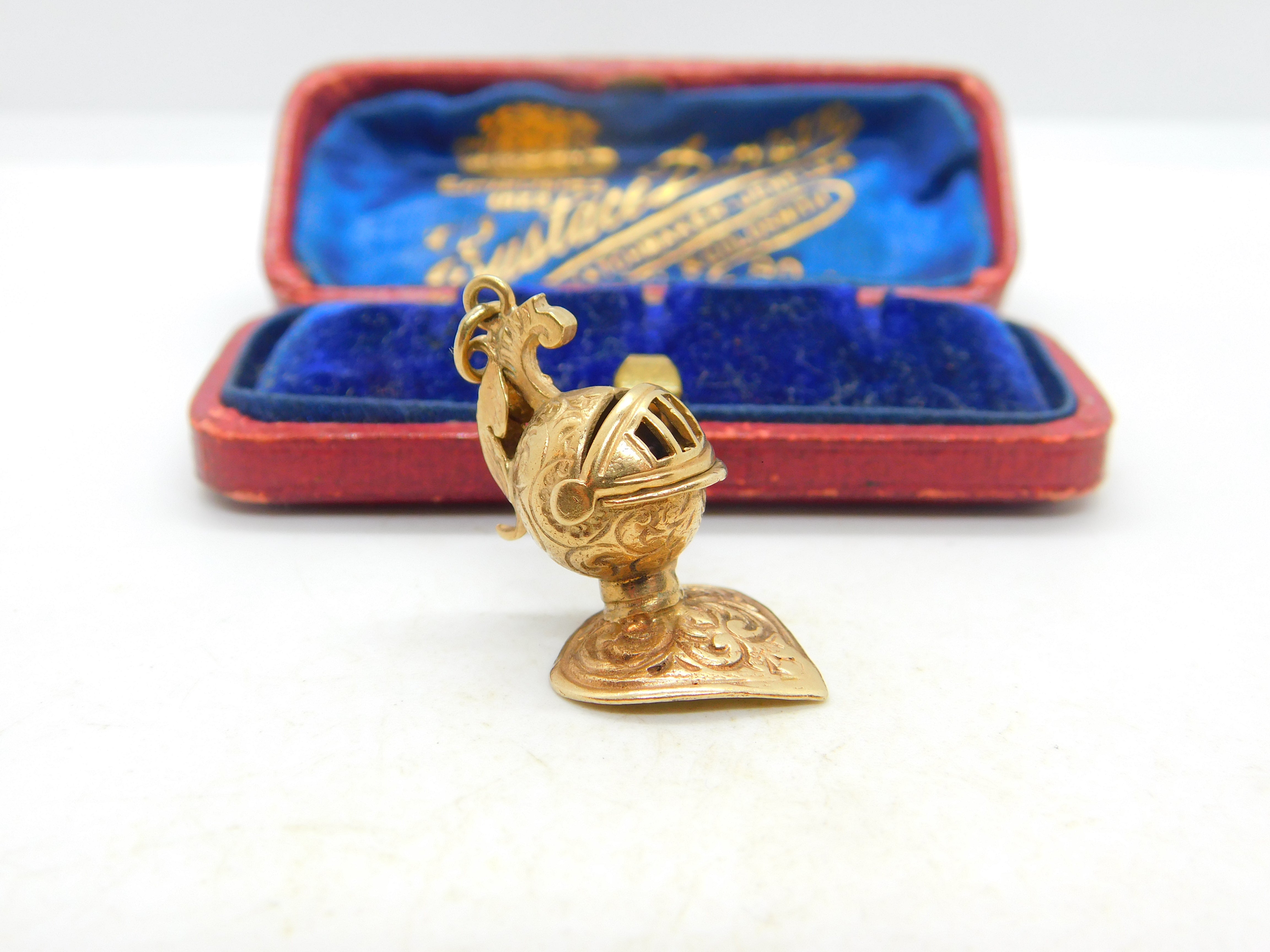 9ct Yellow Gold Medieval Knights Helmet Charm Pendant Vintage 1964 London